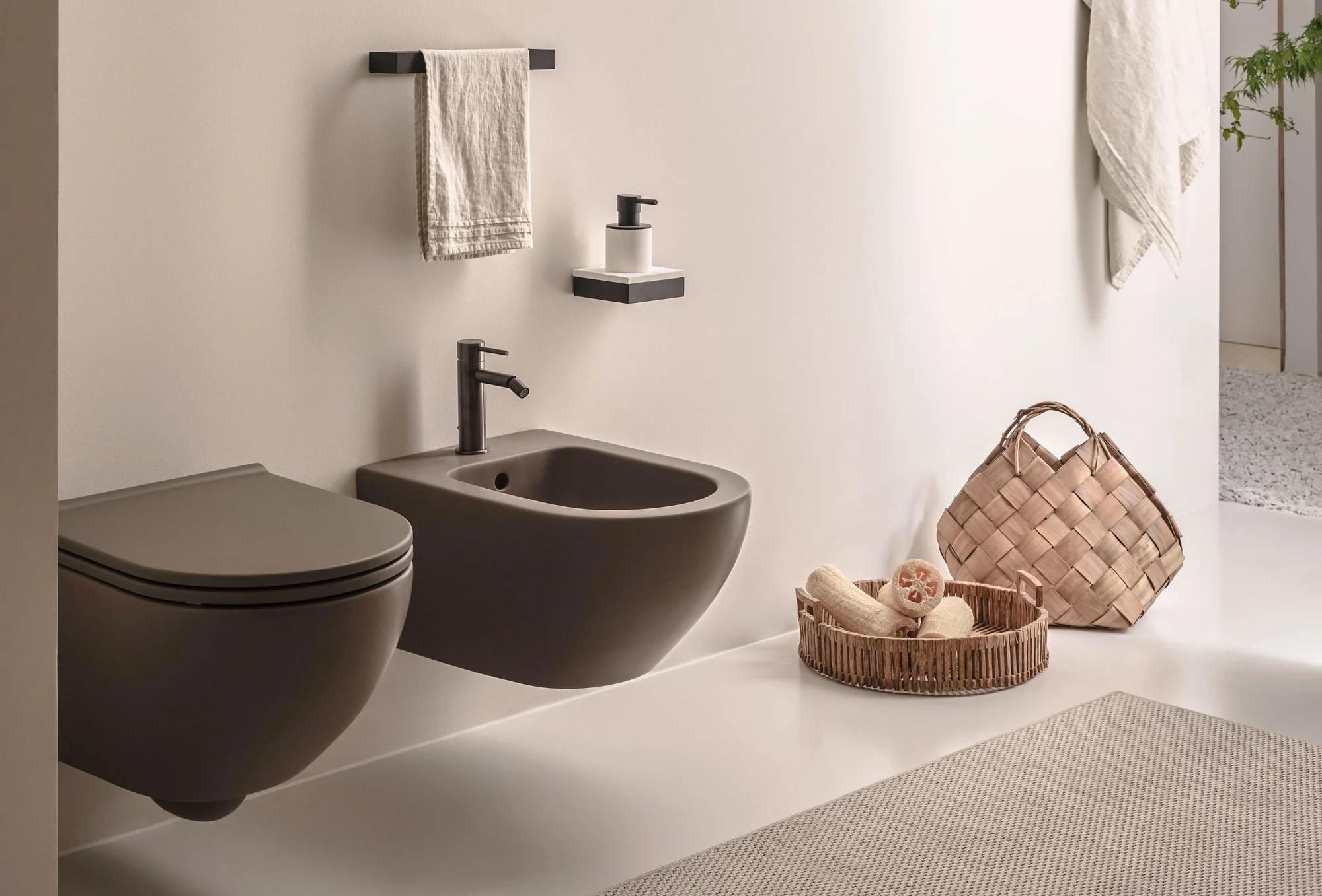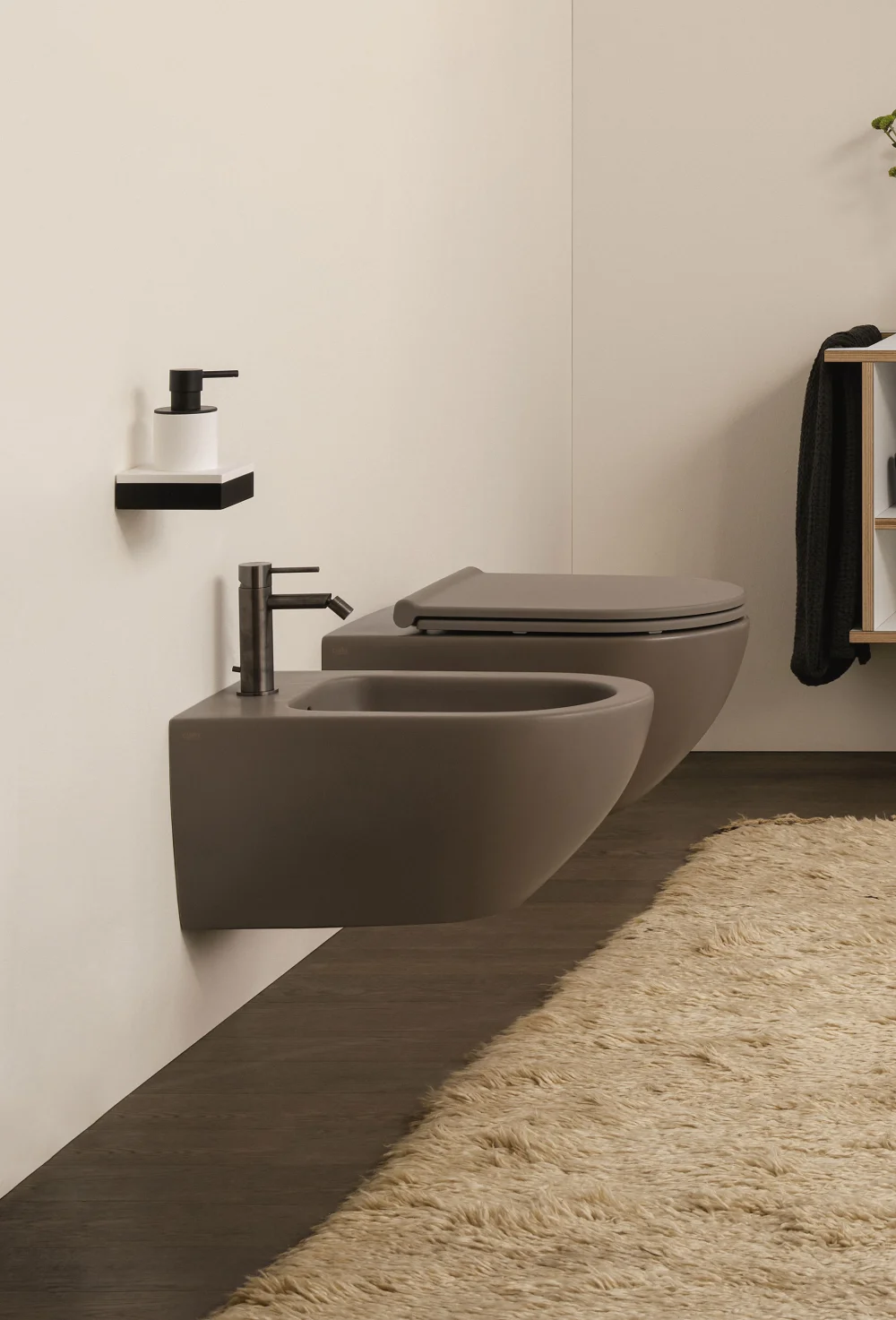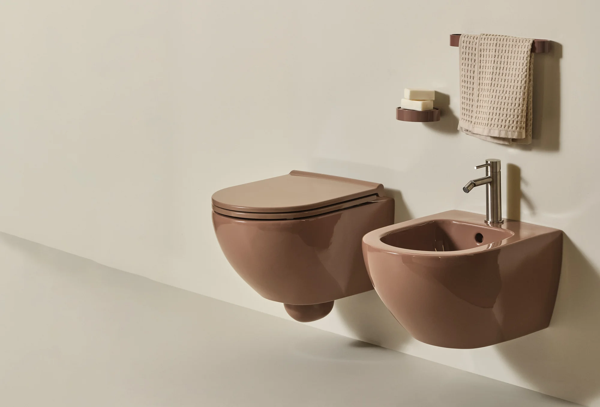L’intera linea di sanitari integra l'innovativa tecnologia Rimless 2.0, garantendo una pulizia profonda e silenziosa. L'impiego di Extrà Ceramic — ceramica colorata ultrasottile con soli 5 mm di spessore — permette di esplorare le nuance delle Terre di Cielo con composizioni creative e armoniose, ideali sia per il settore residenziale che per quello contract.