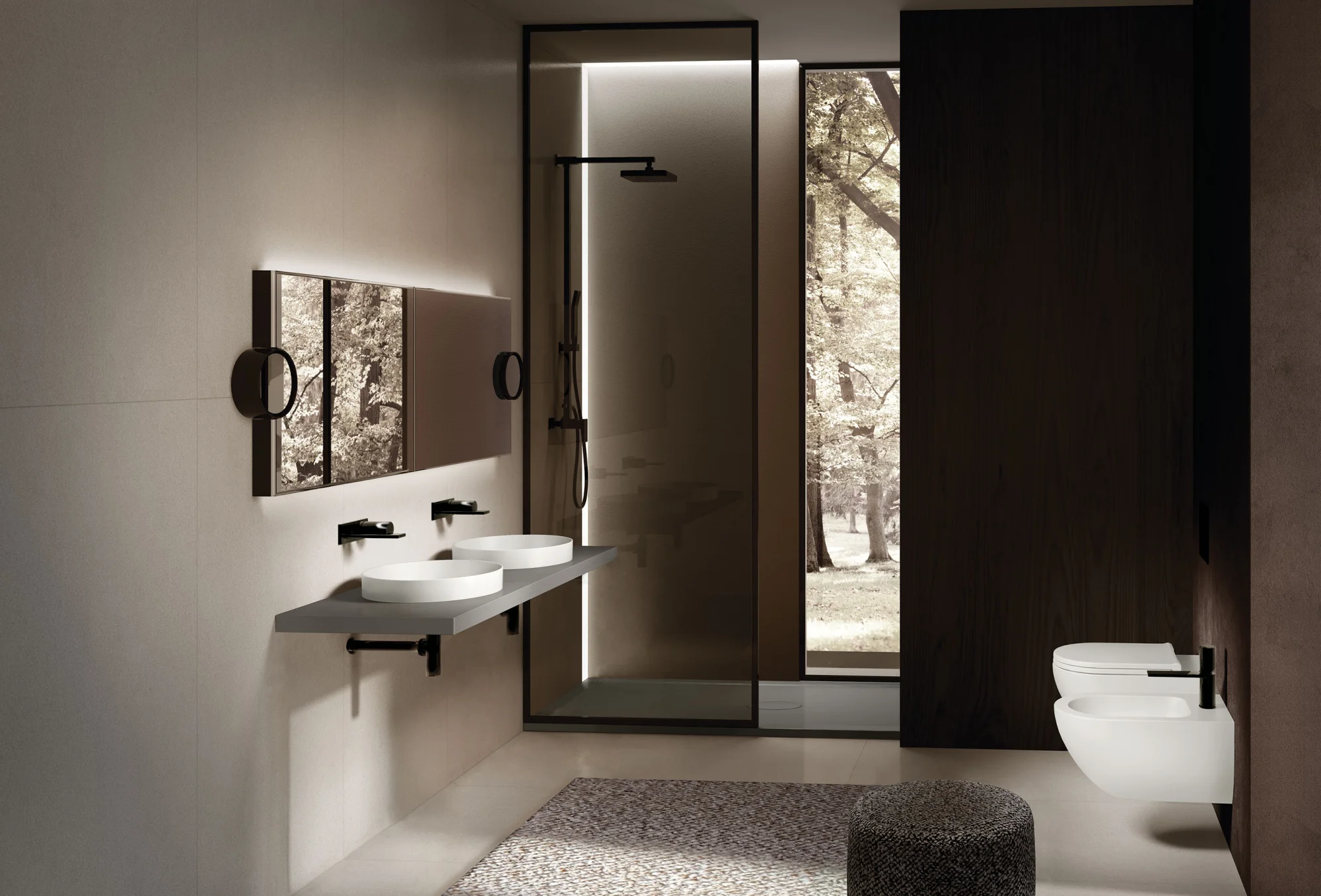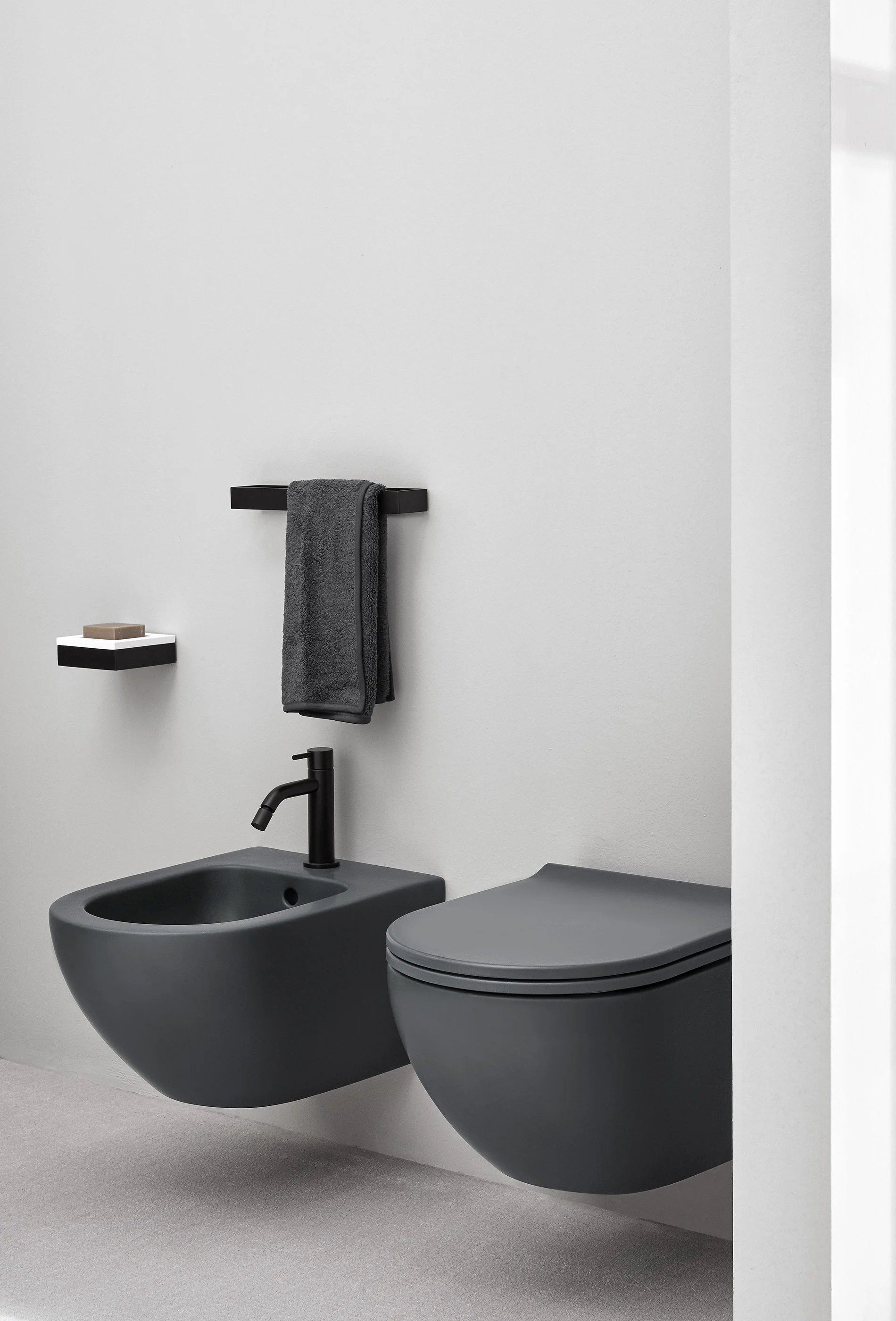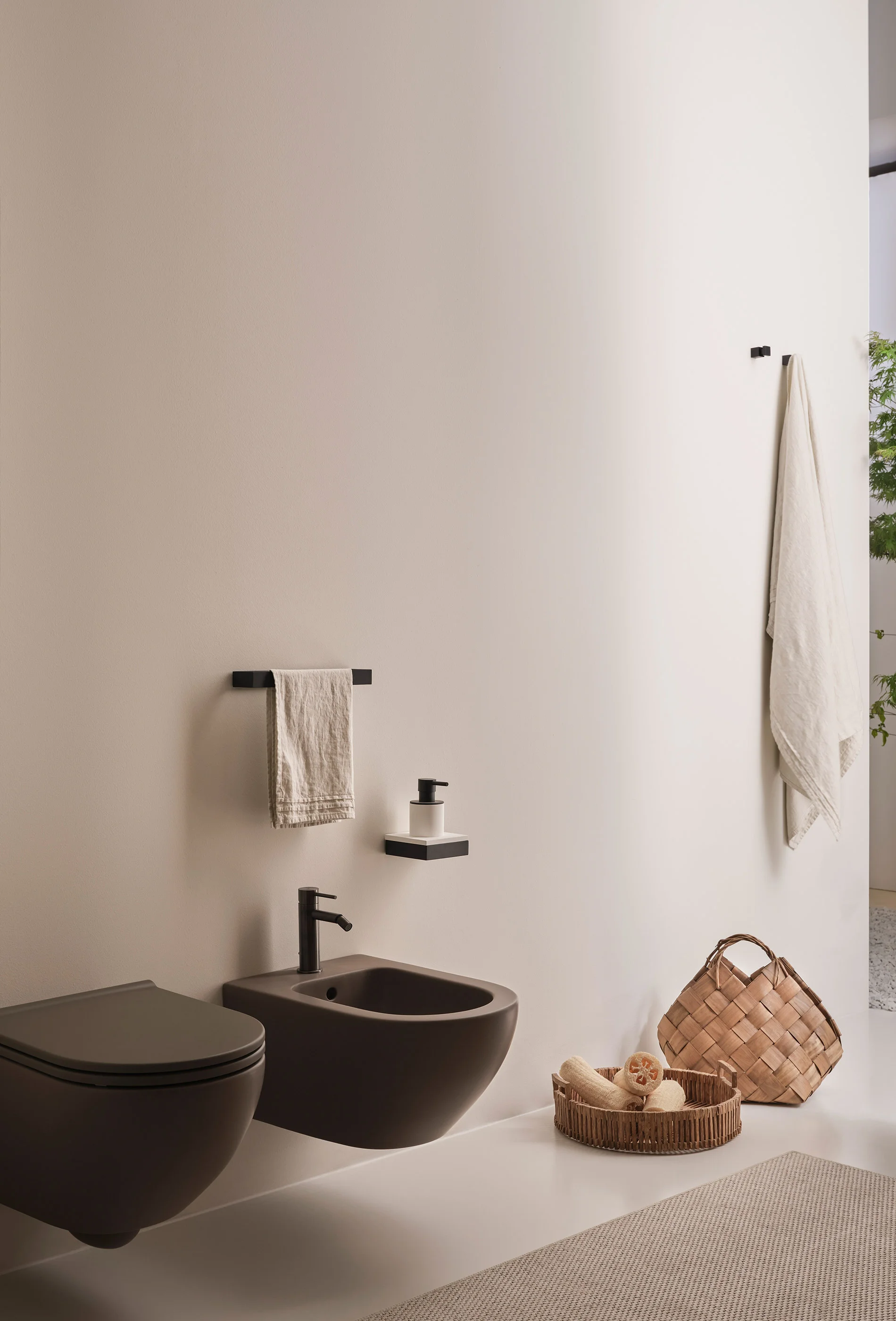 L’intera linea di sanitari integra l'innovativa tecnologia Rimless 2.0, garantendo una pulizia profonda e silenziosa. L'impiego di Extrà Ceramic — ceramica colorata ultrasottile con soli 5 mm di spessore — permette di esplorare le nuance delle Terre di Cielo con composizioni creative e armoniose, ideali sia per il settore residenziale che per quello contract.