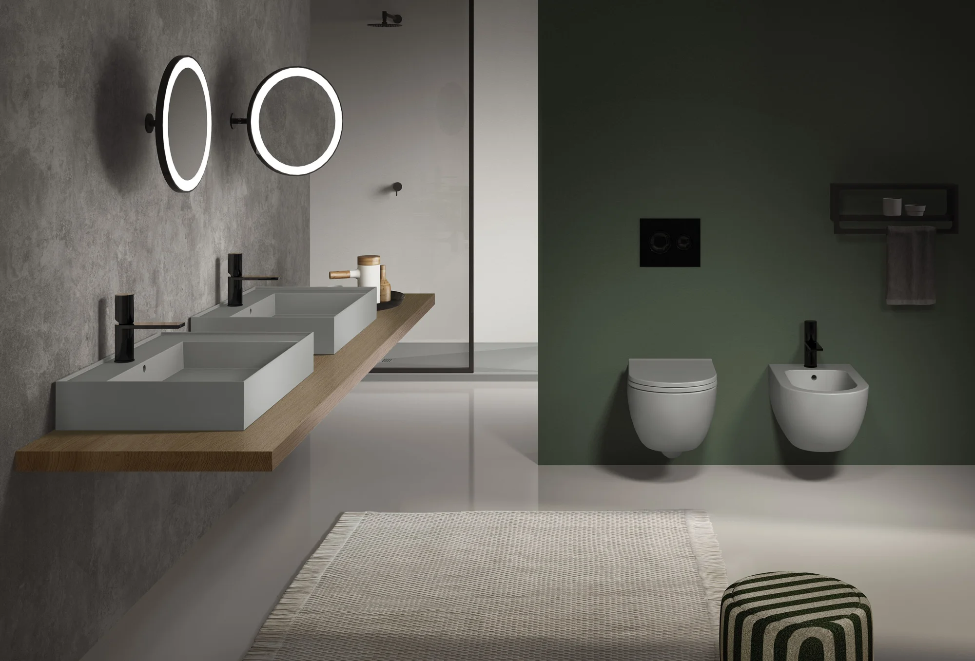 La gamma spazia dai lavabi da appoggio rettangolari ai modelli a semincasso tondi e quadrati, fino alle soluzioni sottopiano dalle diverse geometrie. L’intera linea di sanitari integra l'innovativa tecnologia Rimless 2.0, garantendo una pulizia profonda e silenziosa.
