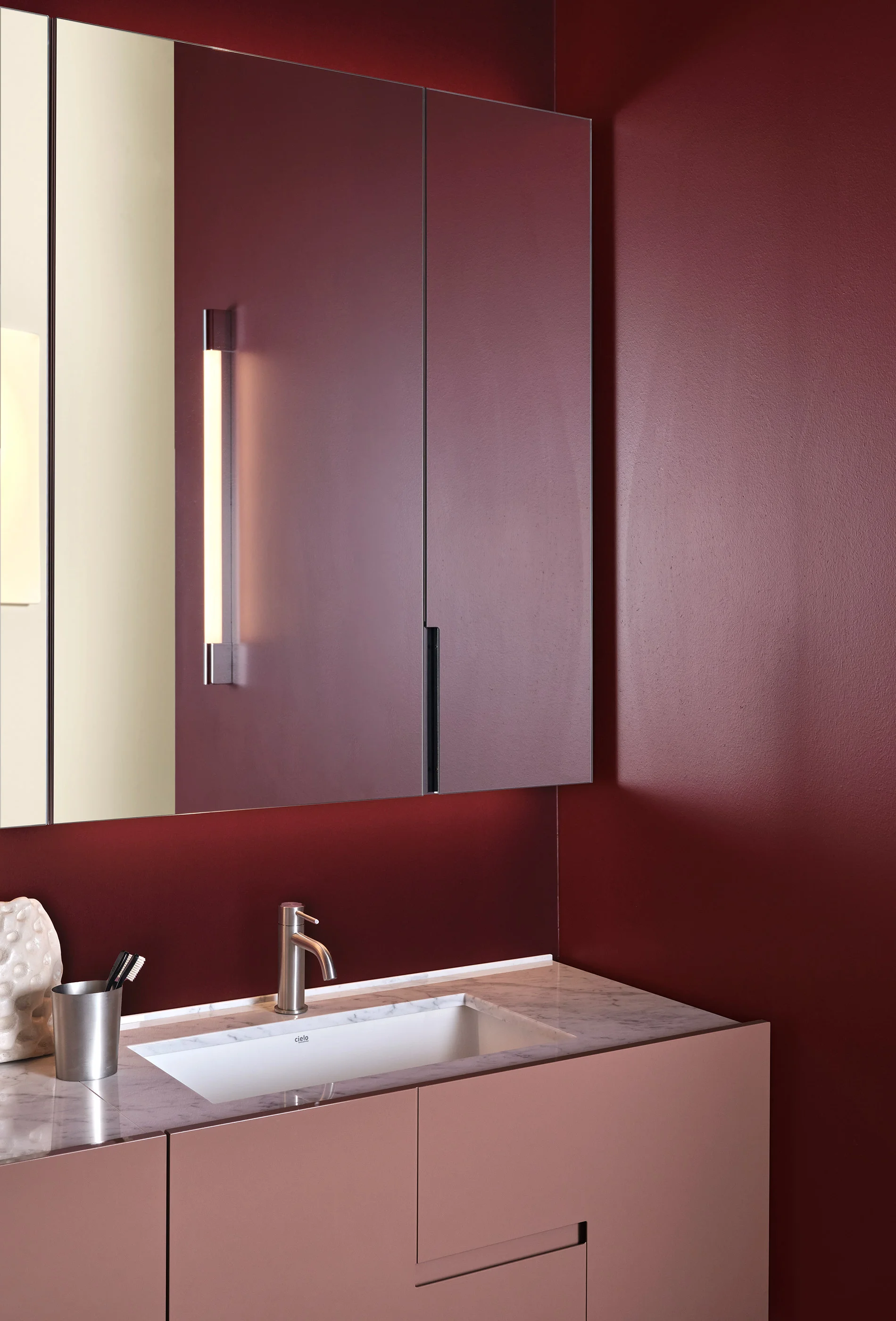 Completano la linea specchi contenitori retroilluminati a LED, disponibili con fianchi a specchio o laccati, declinabili in versione destra o sinistra. L’intera gamma è personalizzabile grazie a un ampio ventaglio di finiture: dai colori delle collezioni “Le Terre di Cielo” e “Le Acque di Cielo”, fino a laccature, legni, metalli, cuoio e marmi pregiati. Ceramica Cielo è un’azienda italiana che realizza arredi bagno combinando design, innovazione tecnica e maestria artigianale, con particolare attenzione alla sostenibilità ambientale.