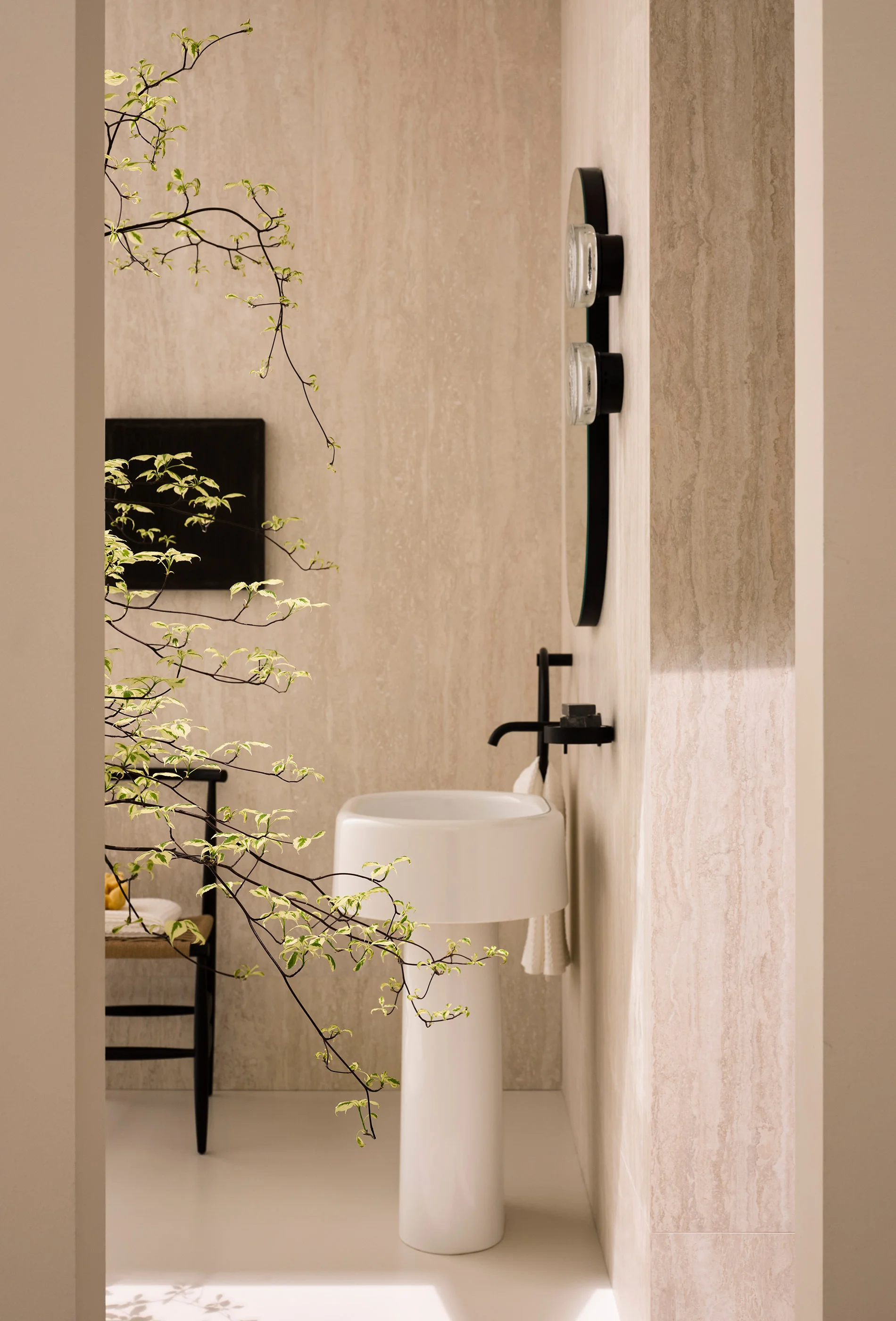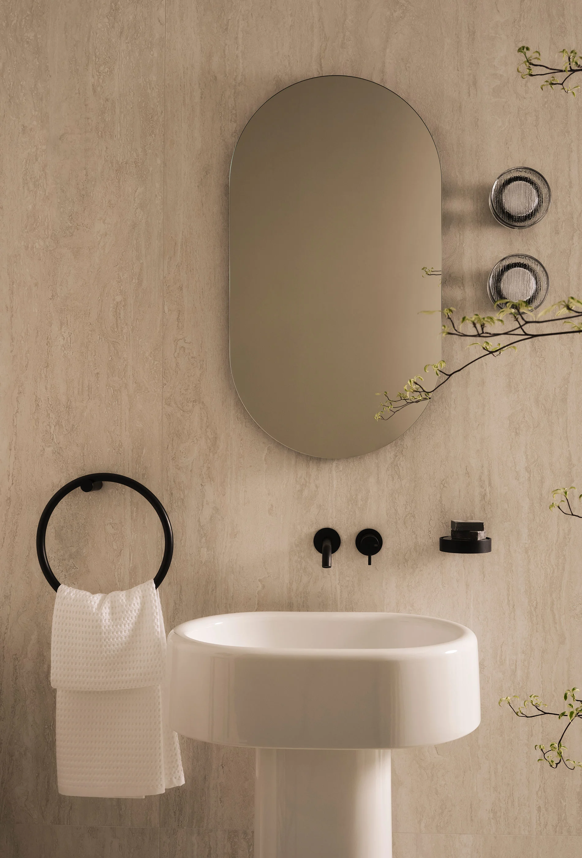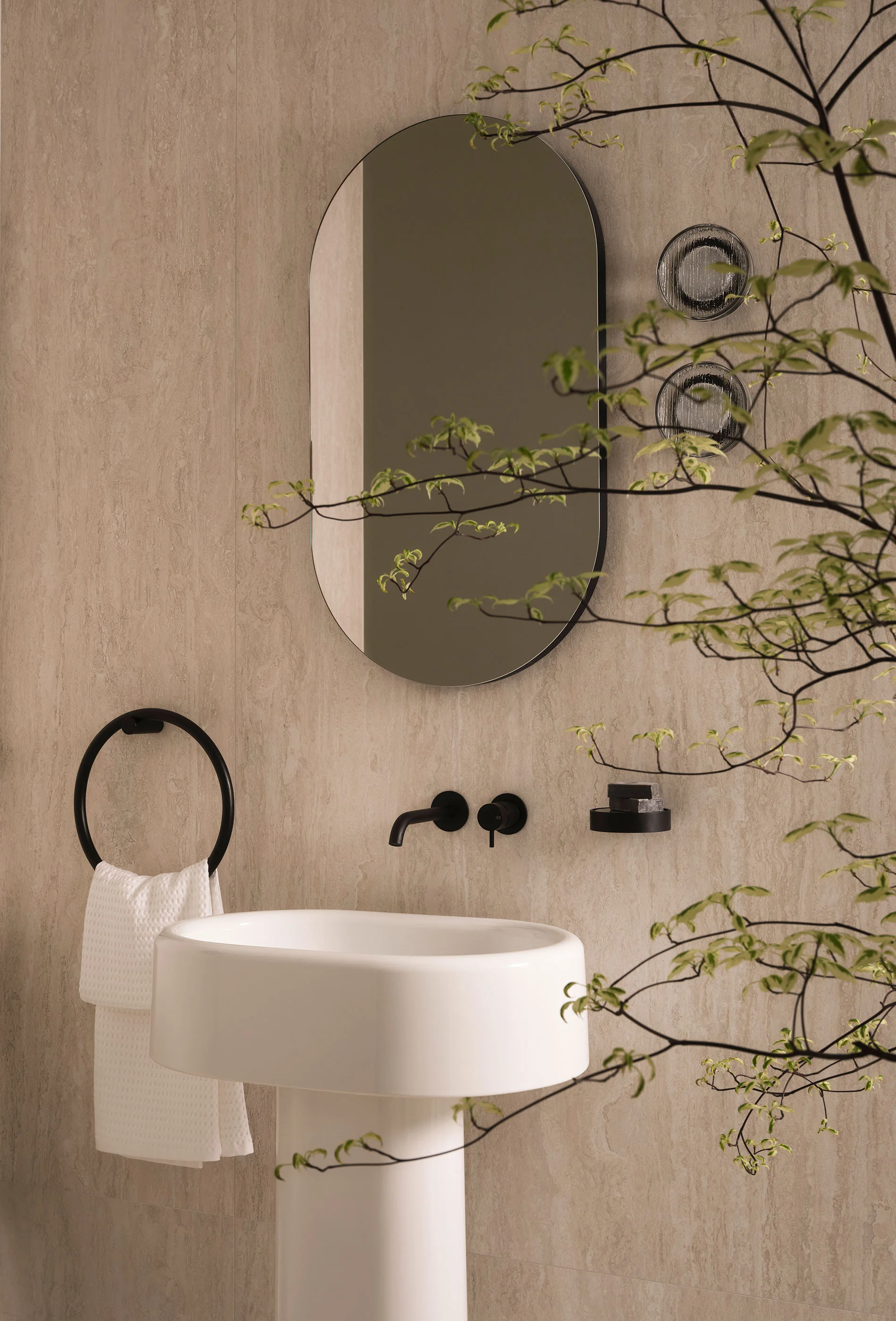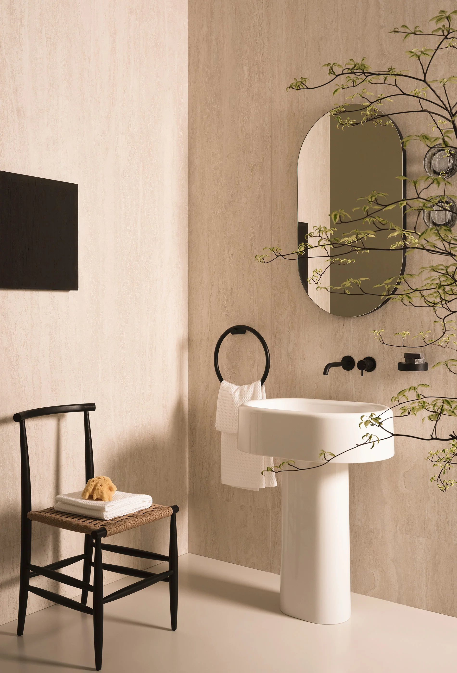 Lavabi e sanitari della collezione sono elementi ceramici dal grande impatto estetico. Monoliti distaccati dalle pareti ma al contempo armoniosamente integrati nell’architettura circostante. Al lavabo freestanding possono essere affiancati mobili contenitori dal design essenziale e funzionale.