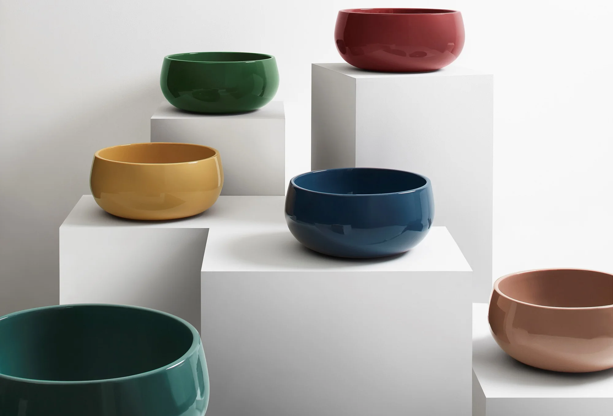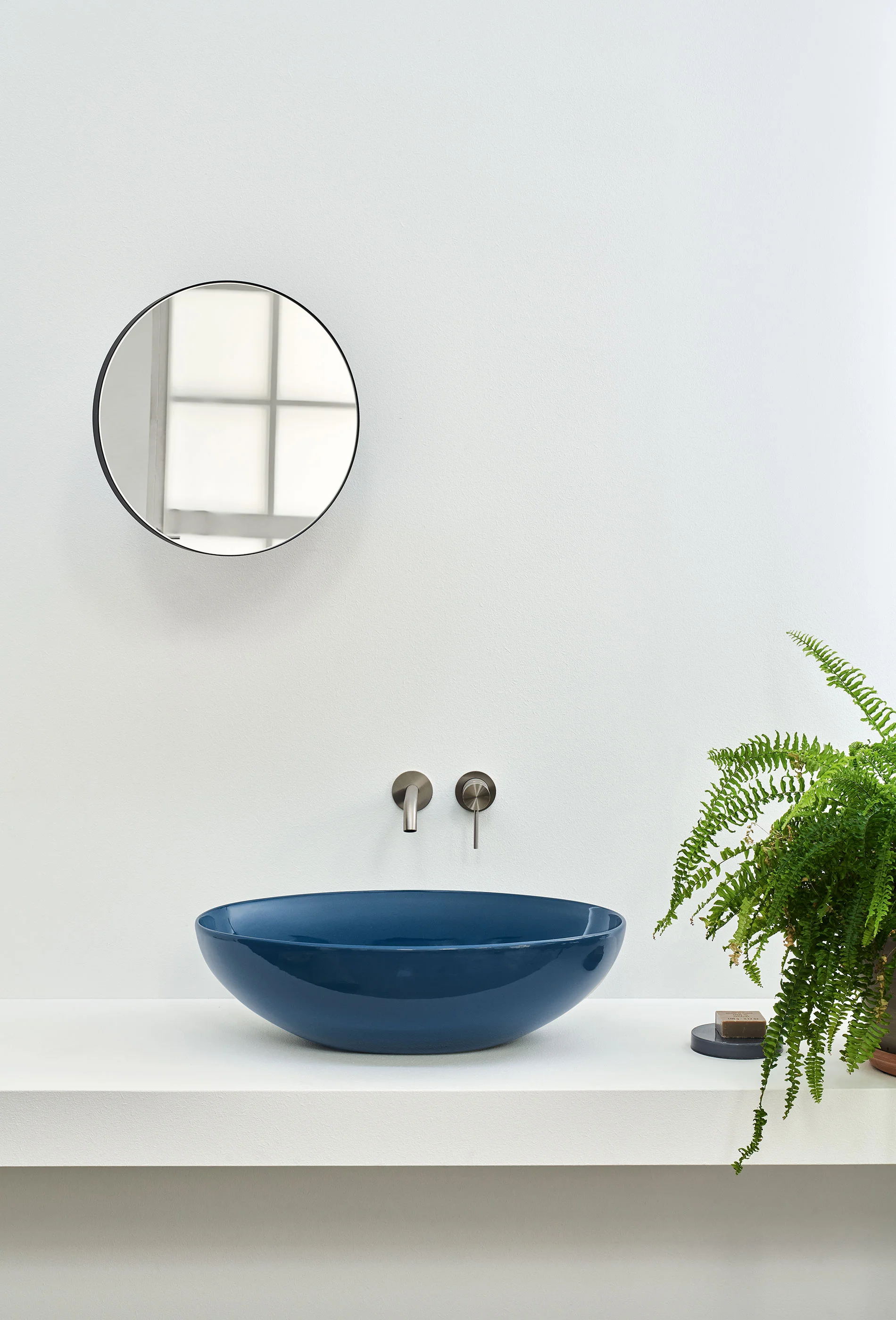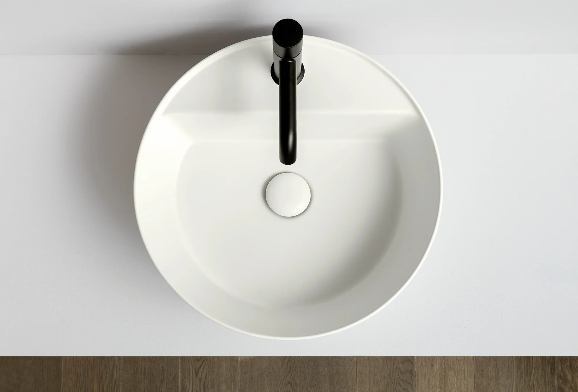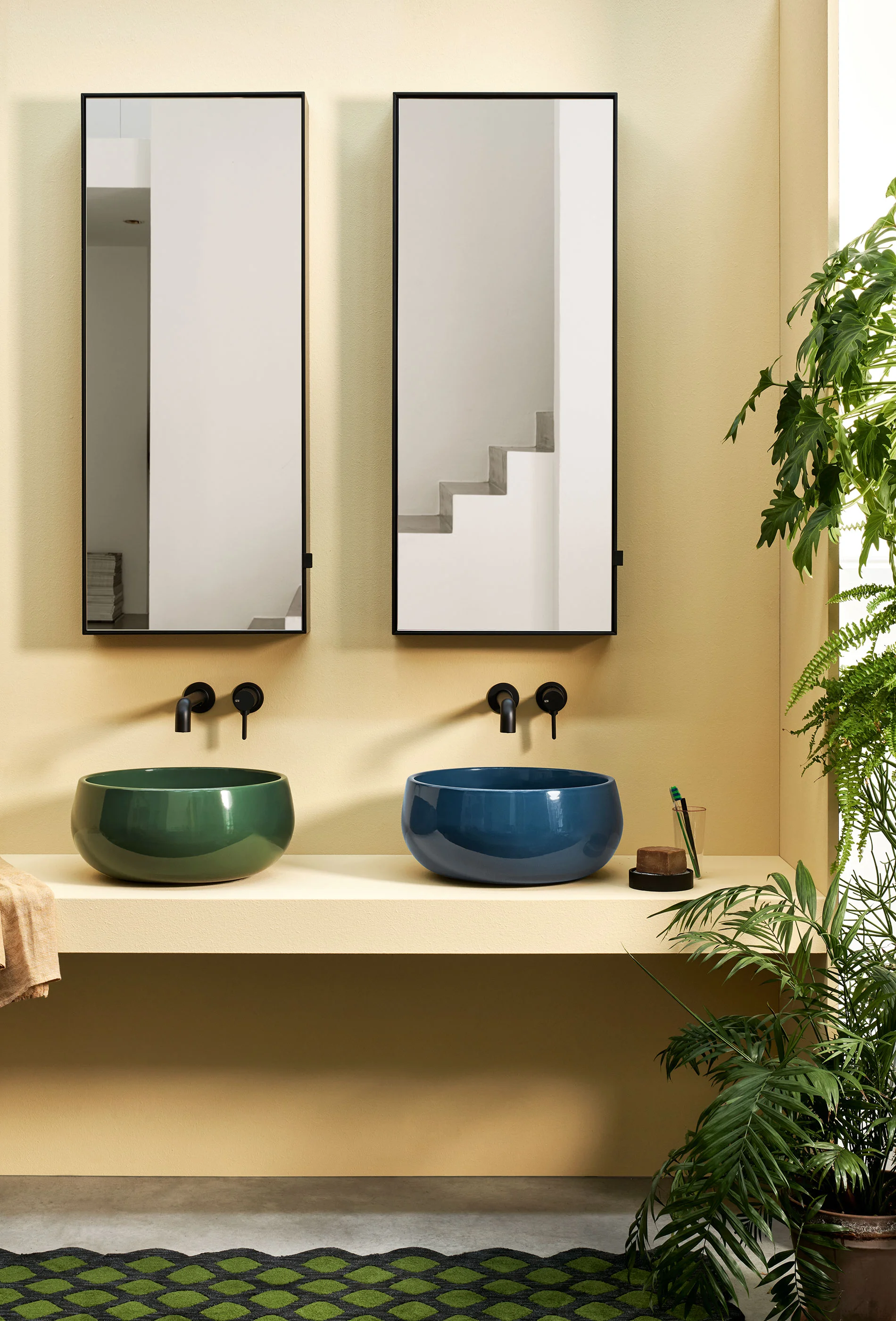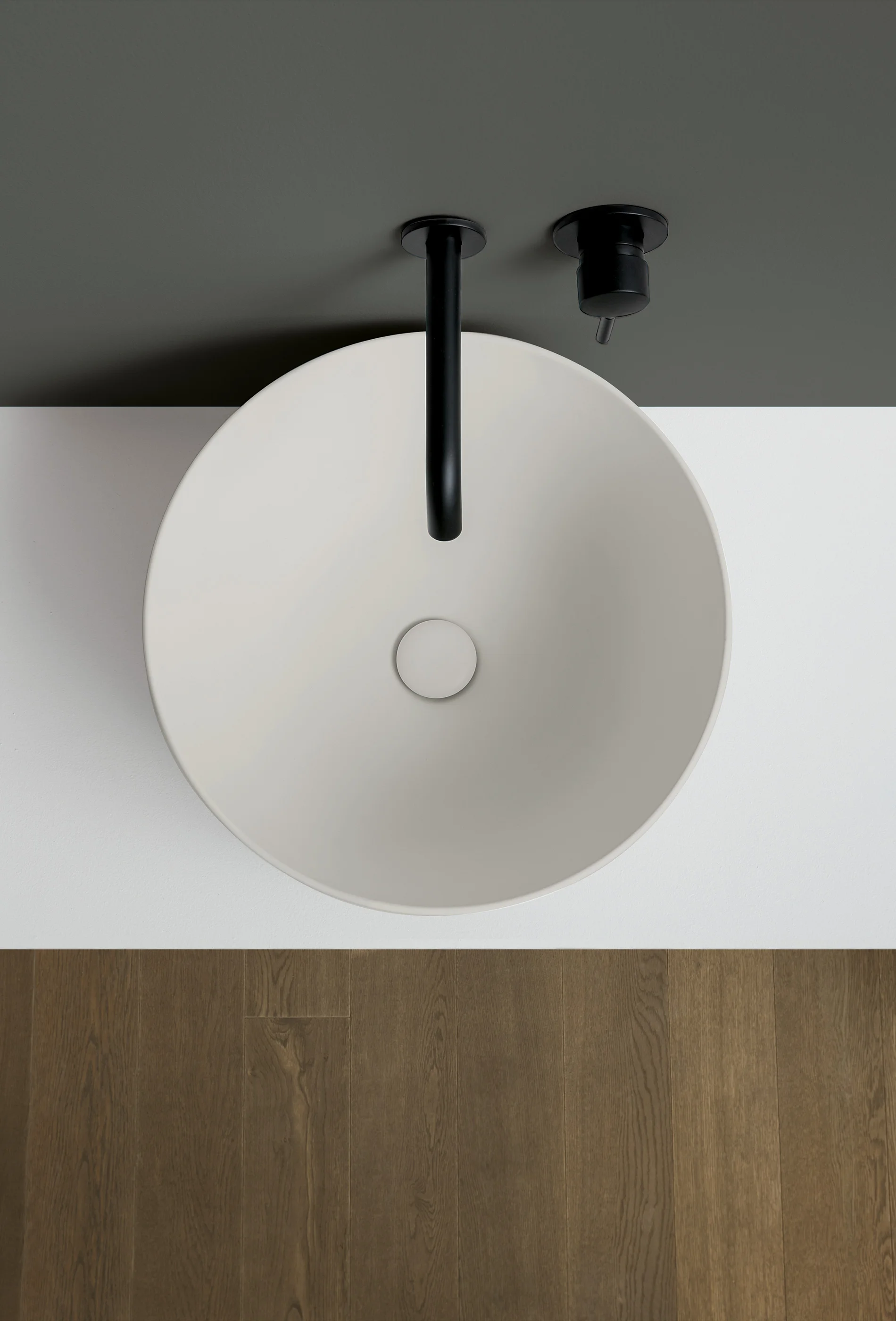 Il design spazia dal cerchio all’ellisse, con linee avvolgenti che esaltano la plasticità della materia ceramica. Il gioco di luci e ombre valorizza le curve generose di questi lavabi, trasformandoli in elementi scultorei per il bagno moderno.