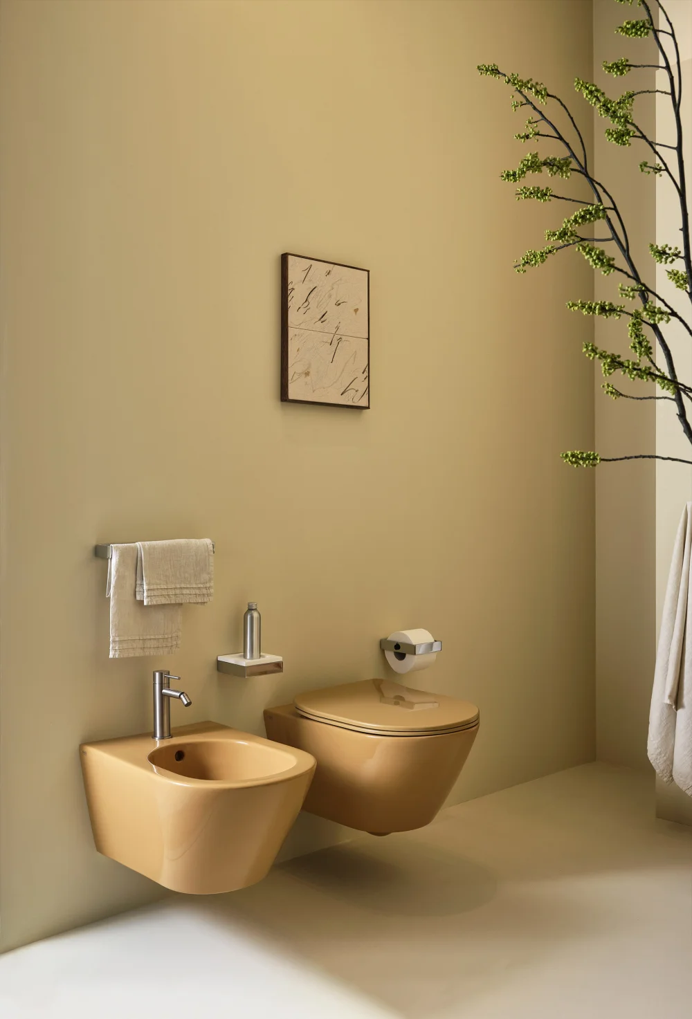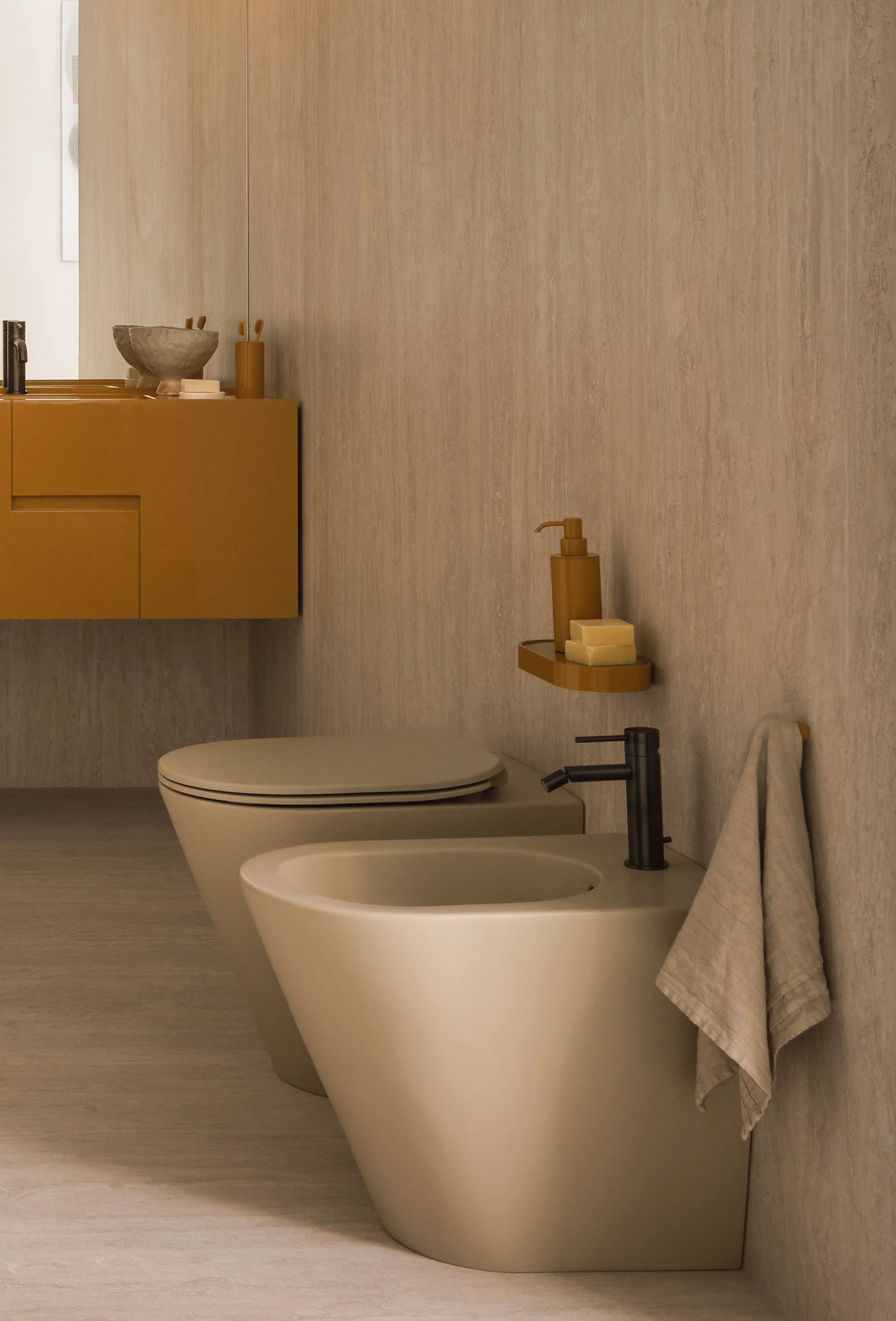 Protagonisti della serie sono i sanitari, disponibili sia sospesi che a terra, dotati della tecnologia esclusiva Rimless 2.0.1: un sistema silenzioso ed efficiente che assicura igiene profonda e risparmio idrico. Grazie alla palette cromatica di Cielo, Mare permette di creare accostamenti ton sur ton o contrasti sofisticati, inserendosi con naturalezza in contesti residenziali o progetti contract di alto profilo.