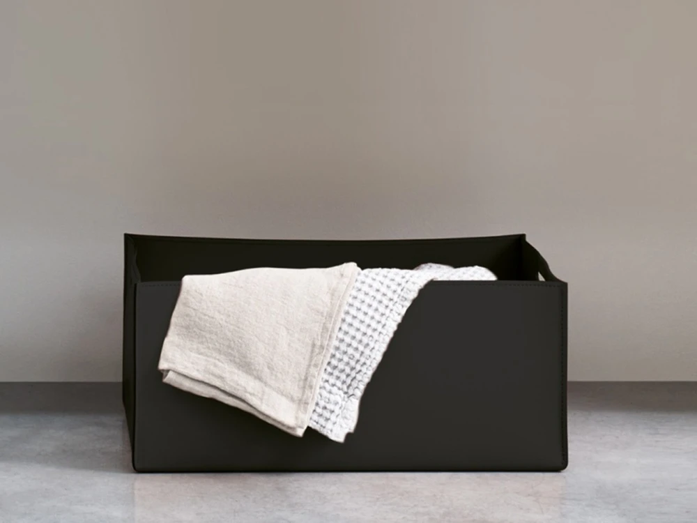 Le ceste in cuoio Ceramica Cielo introducono un elemento materico e funzionale nello spazio bagno, dove la morbidezza del materiale incontra un’estetica essenziale e contemporanea. Volumi flessibili e dettagli curati definiscono accessori discreti, pensati per organizzare l’ambiente con naturale eleganza.