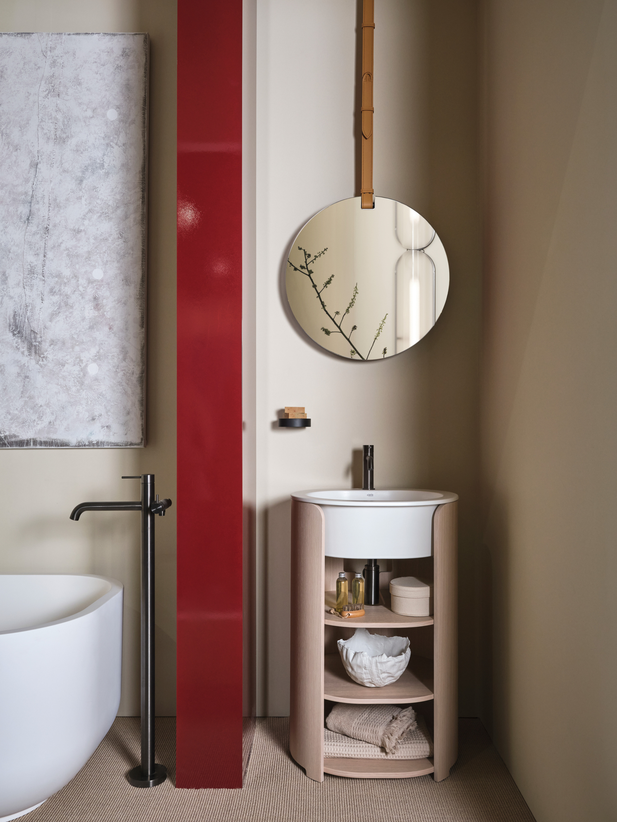 Mobile Tiberio freestanding con 3 vani a giorno, scarico a parete