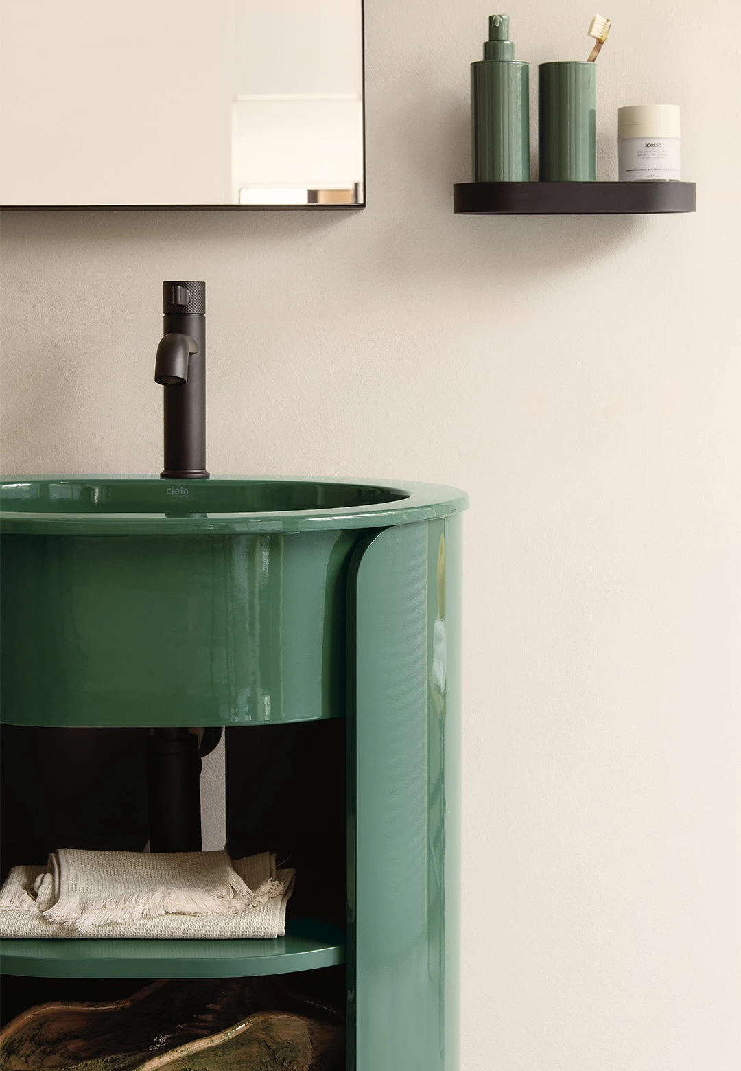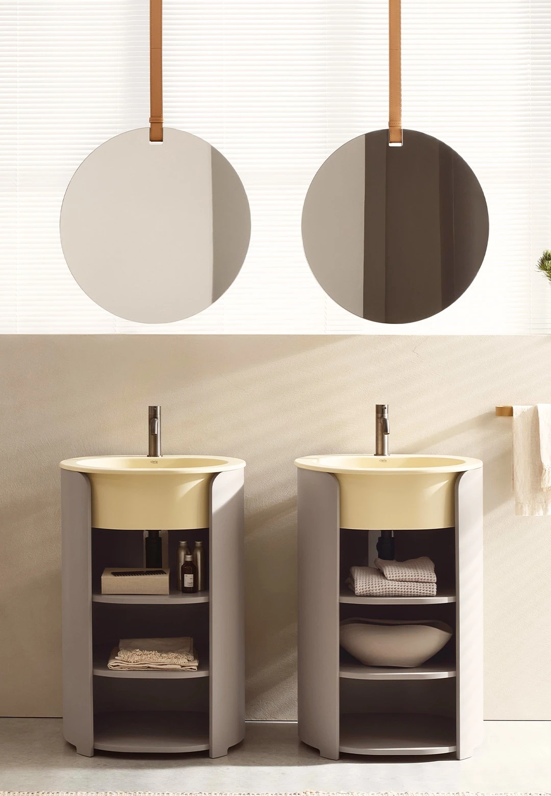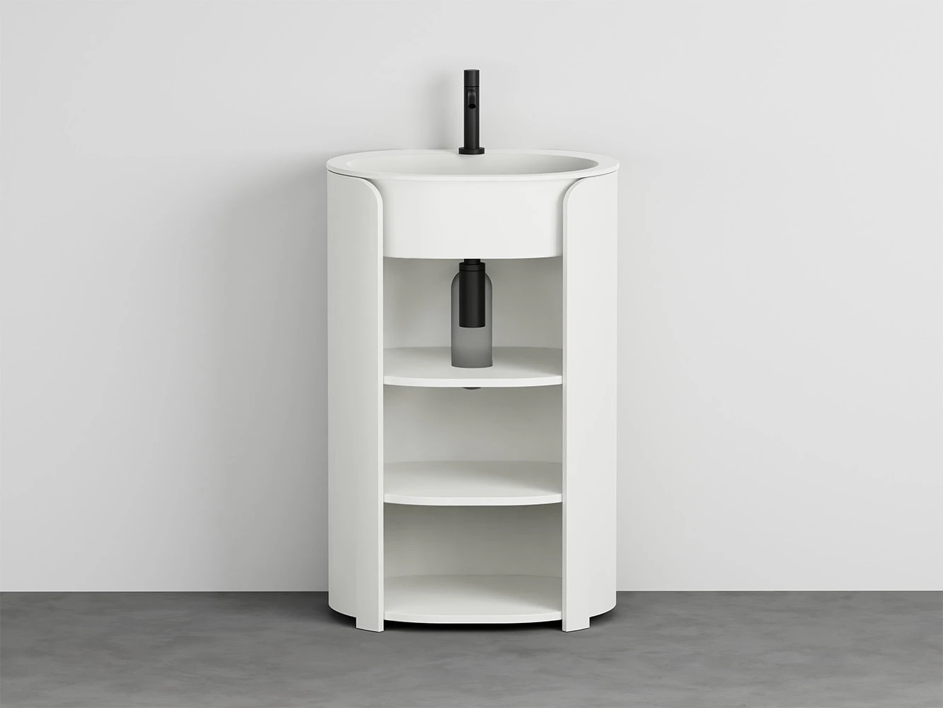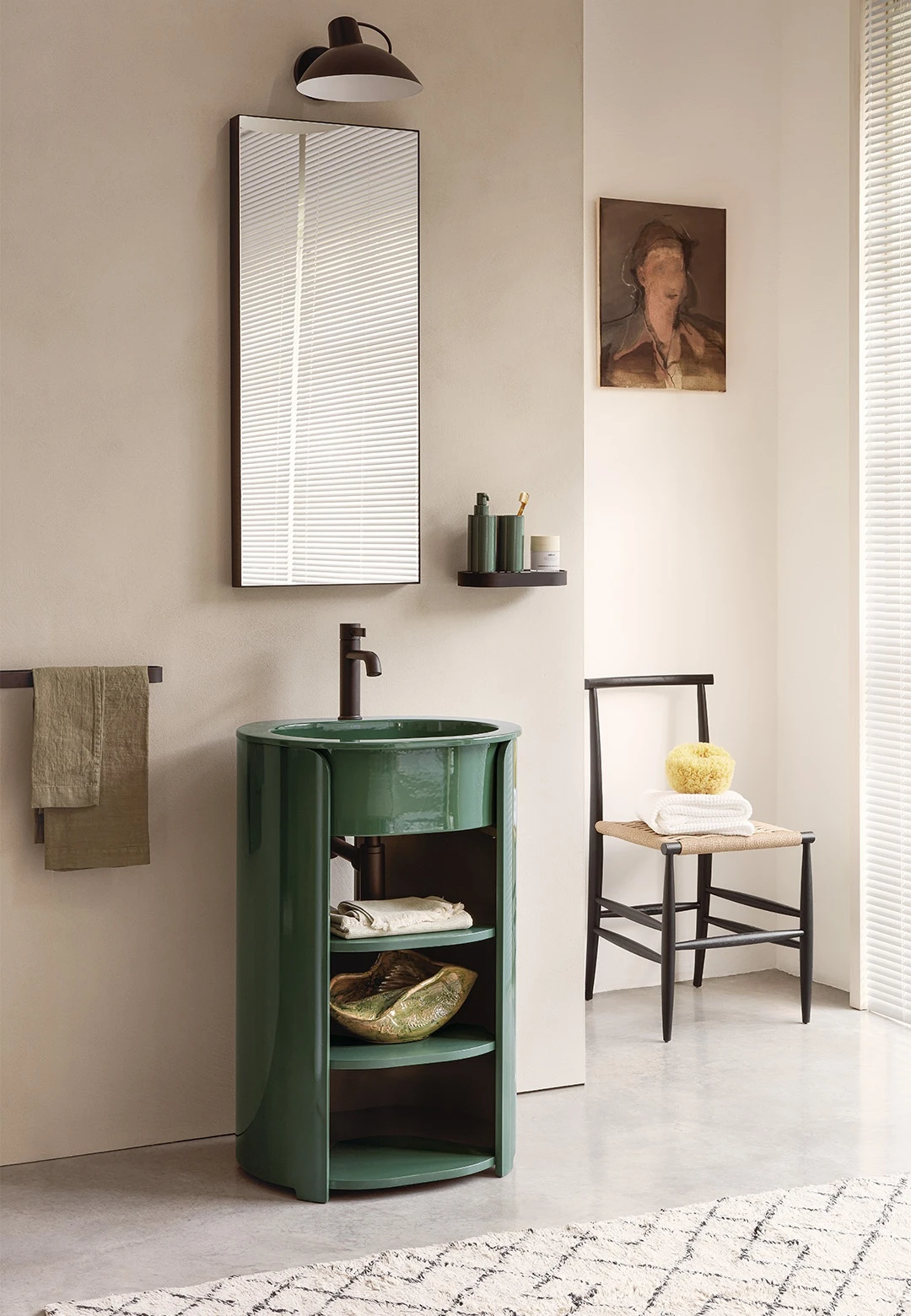 Mobile Tiberio freestanding con 3 vani a giorno, scarico a parete