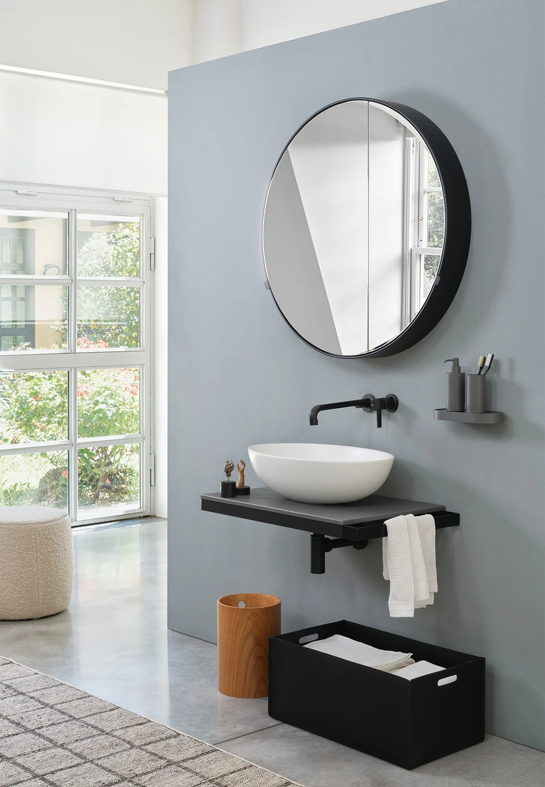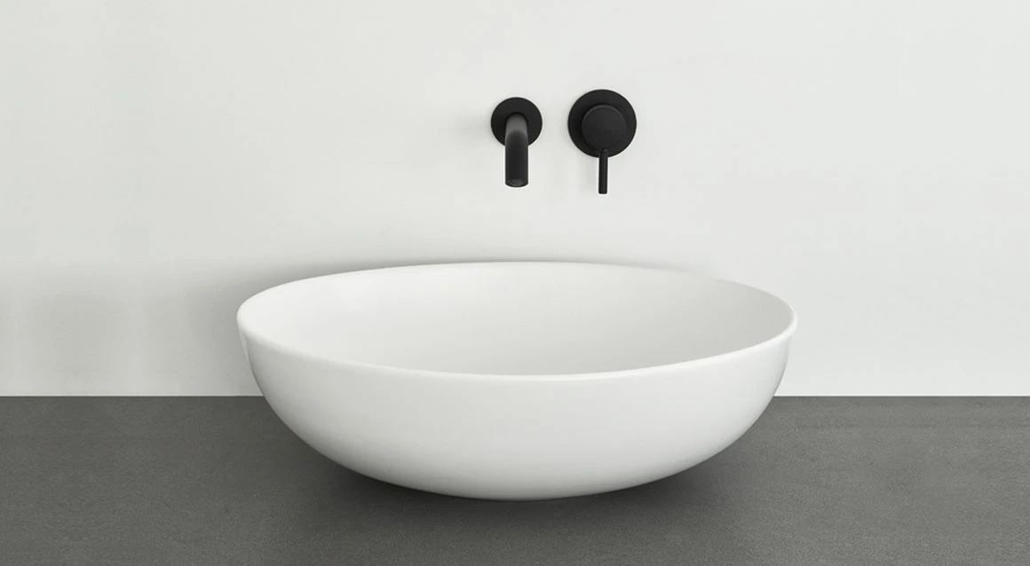 Bacinella Eco Small da appoggio, senza troppo pieno, rifinita su tutti i lati. Disponibile in varie finiture ceramiche.