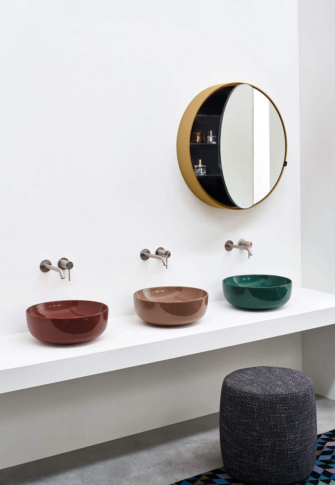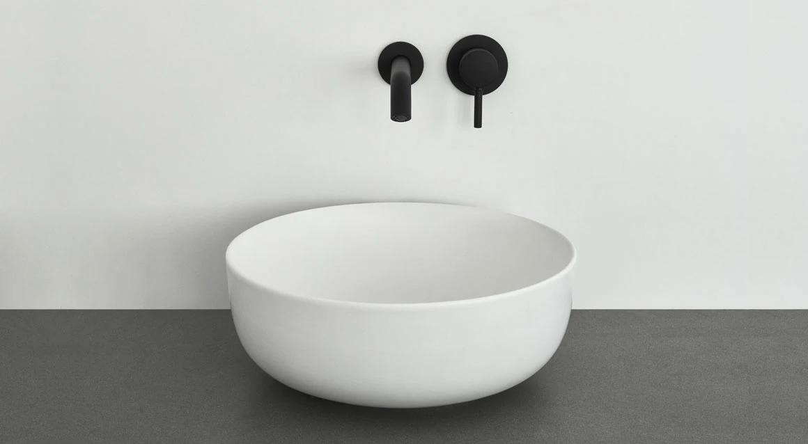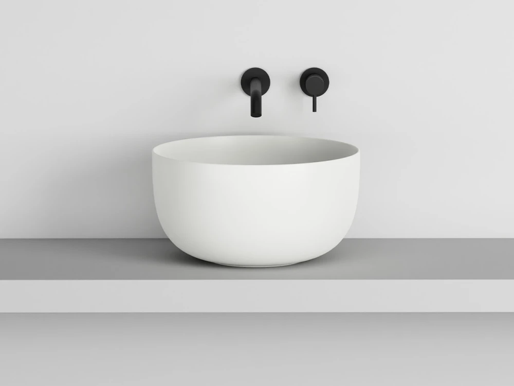 Bacinella da appoggio, senza troppo pieno, rifinita su tutti i lati. Disponibile in varie finiture ceramiche.