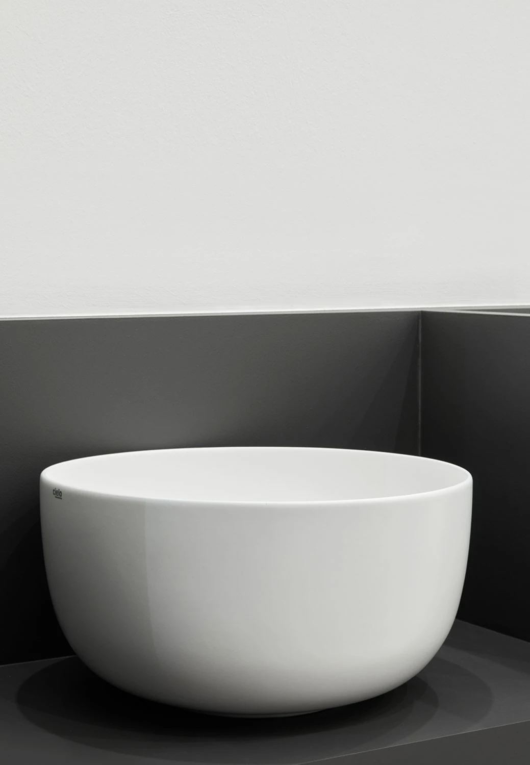 Bacinella da appoggio, senza troppo pieno, rifinita su tutti i lati. Disponibile in varie finiture ceramiche.