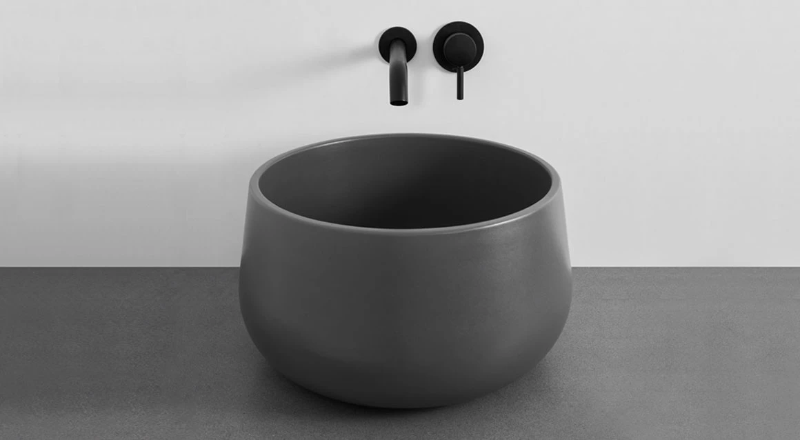 Bacinella da appoggio, senza troppo pieno, rifinita su tutti i lati e disponibile nelle varie finiture ceramiche.