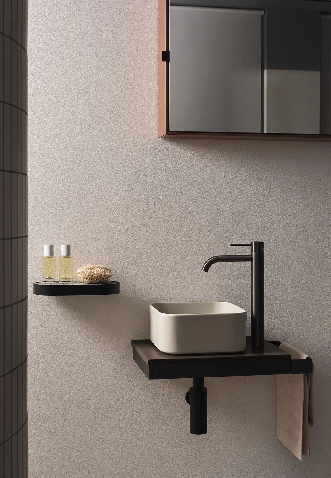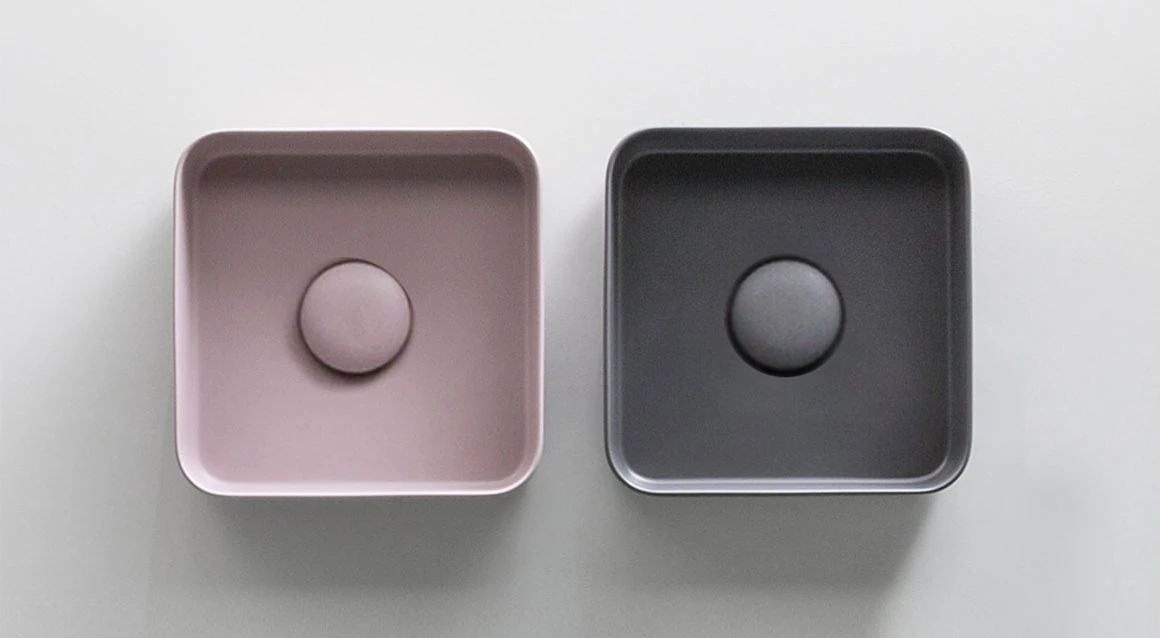 Lavabo da appoggio senza troppo pieno, rifinito su tutti i lati. Disponibile in varie finiture ceramiche.