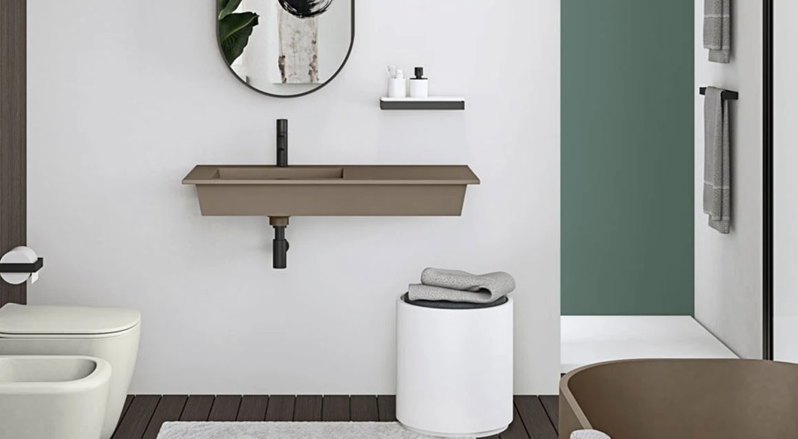 Lavabo sospeso 100 con bacino sinistro e portasciugamani a sinistra