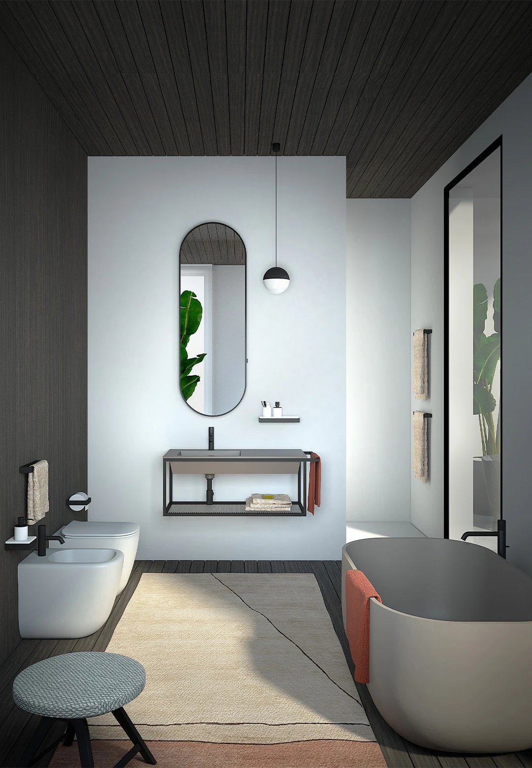 Lavabo sospeso 100 con struttura e portasciugamani sulla struttura