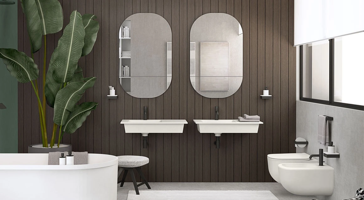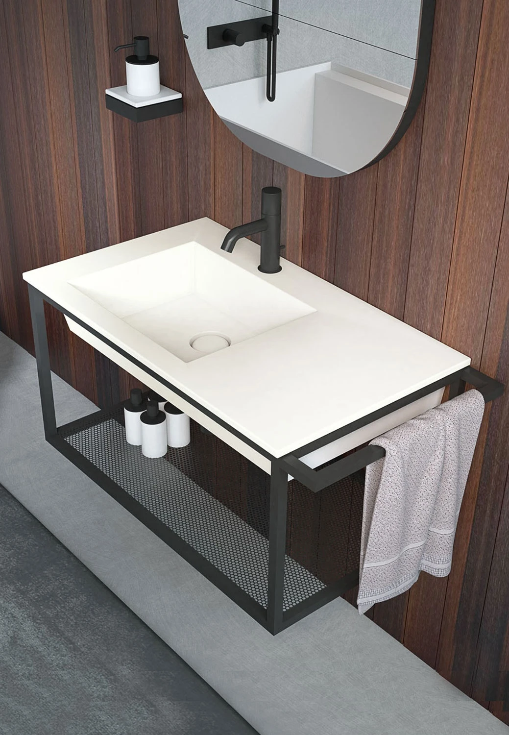 Lavabo Era senza troppo pieno, per installazione sospesa e da appoggio, disponibile in varie finiture ceramiche.