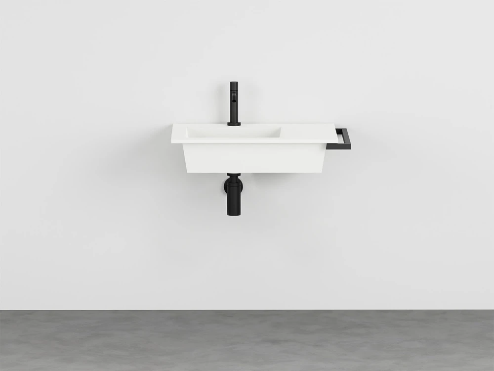 Lavabo sospeso 60 con bacino sinistro e portasciugamani a destra