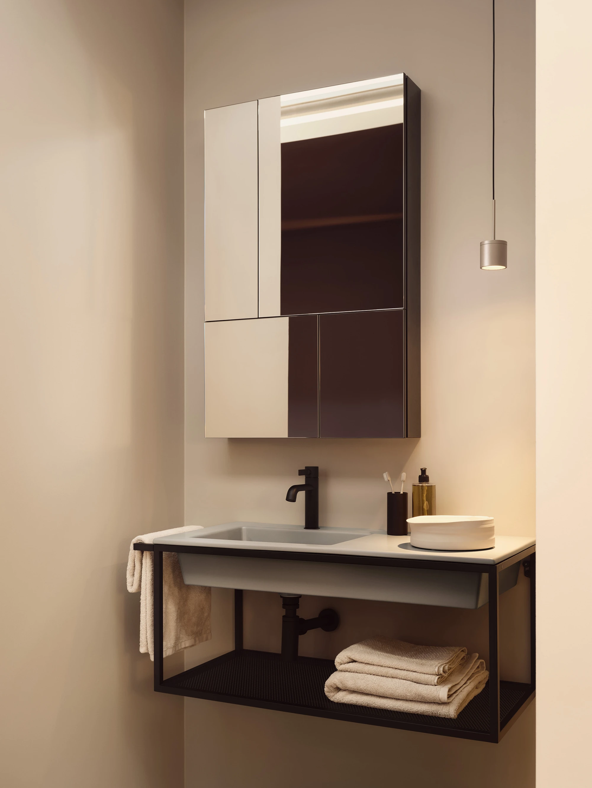 Lavabo sospeso 80 con struttura e portasciugamani sulla struttura