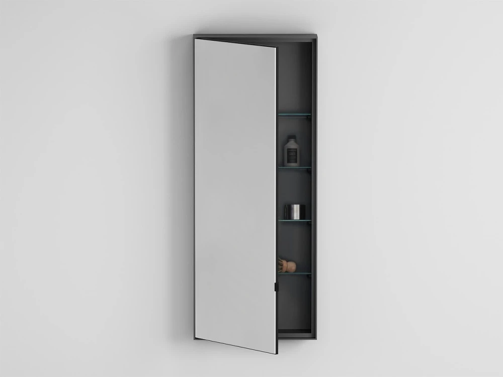 Gli specchi contenitori di Ceramica Cielo uniscono riflessione e funzionalità in un unico elemento discreto e raffinato. Superfici essenziali celano spazi organizzati, dando forma a soluzioni che integrano ordine e leggerezza visiva, in dialogo con l’architettura del bagno.
