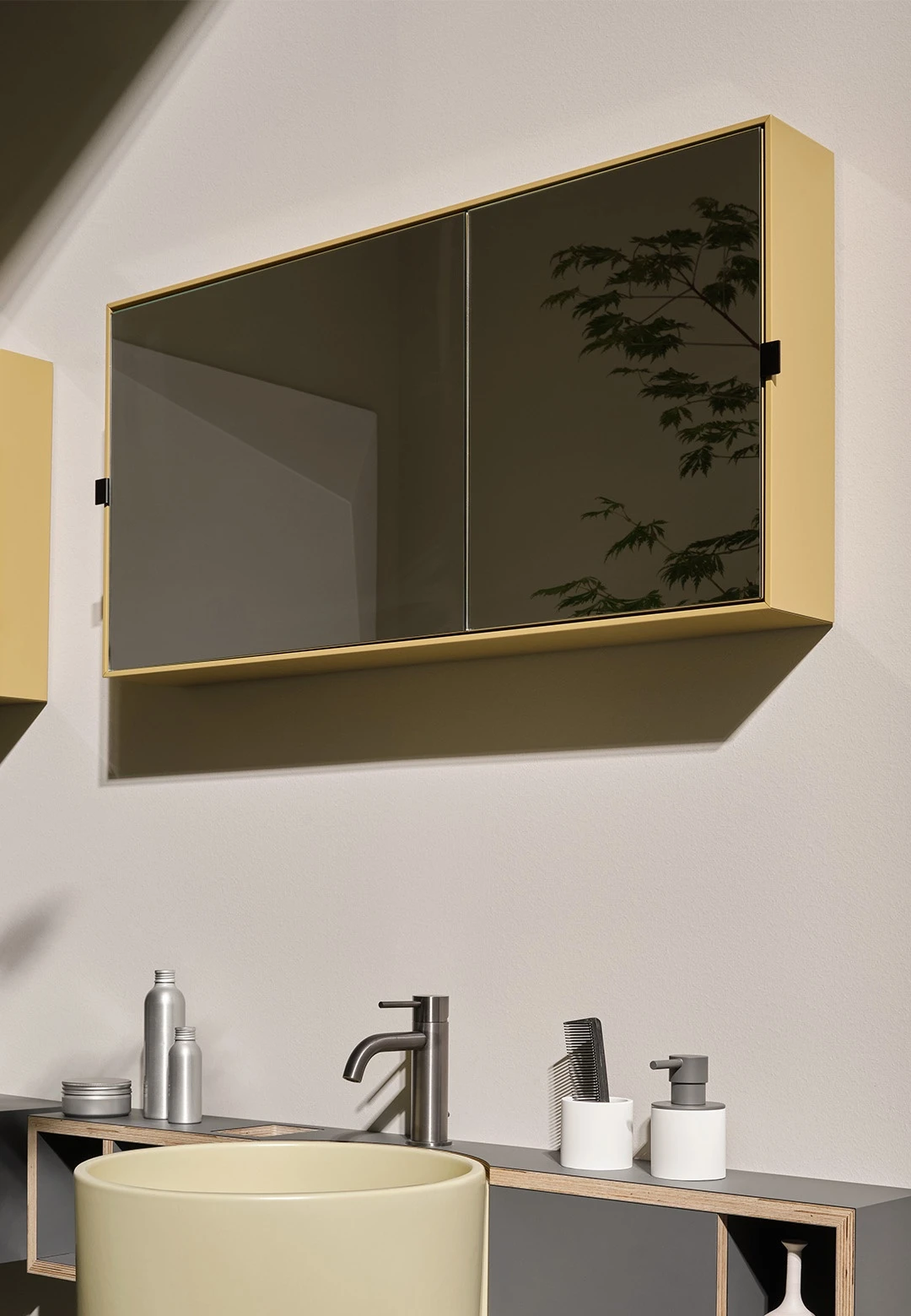 Specchio contenitore rettangolare con scocca laccata.