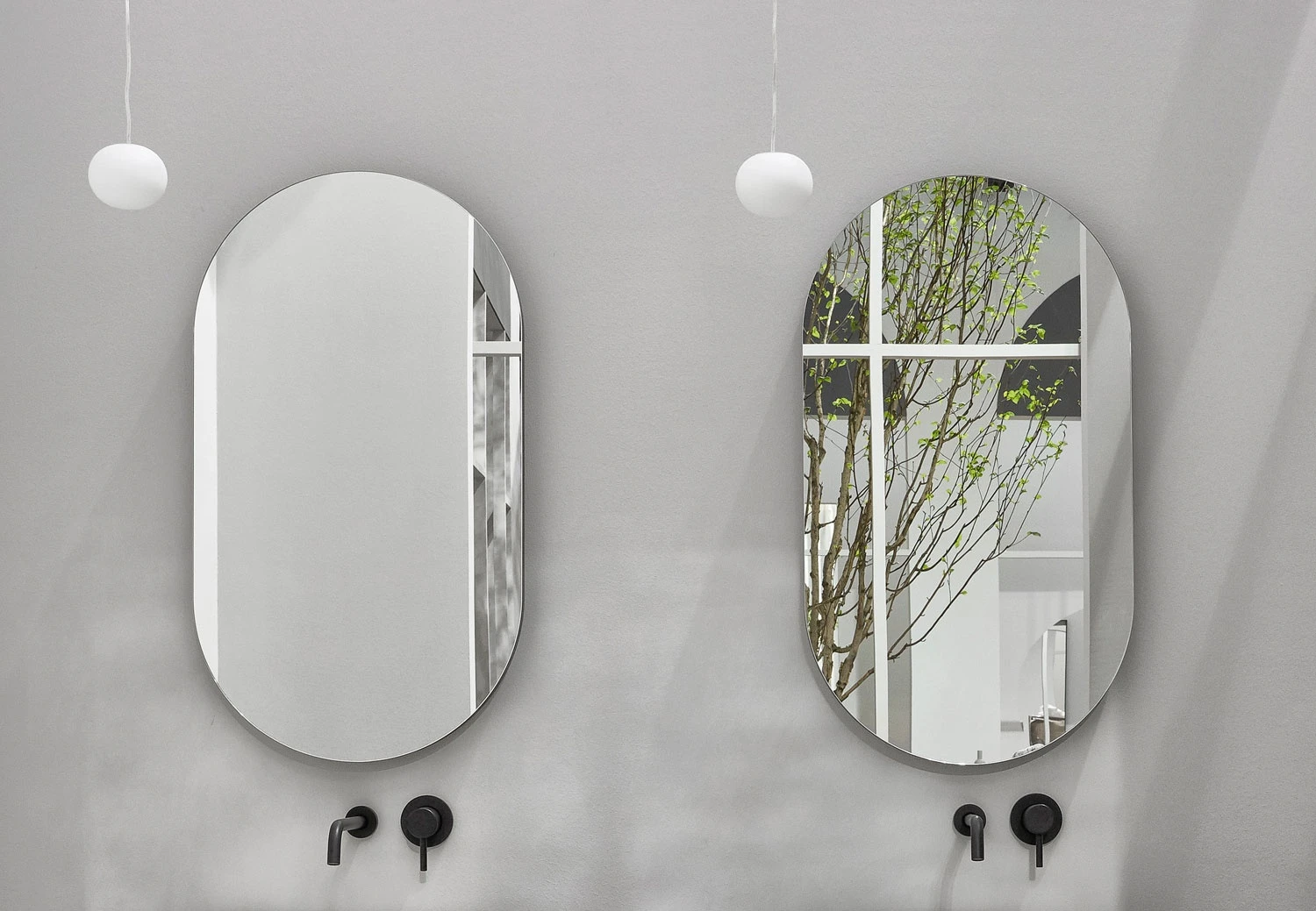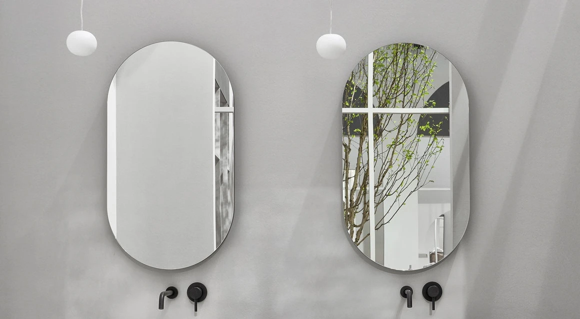 Specchio ovale con scocca laccata in diverse finiture.