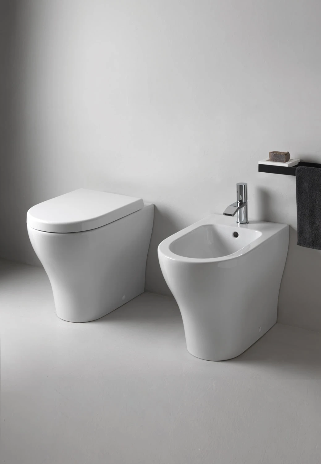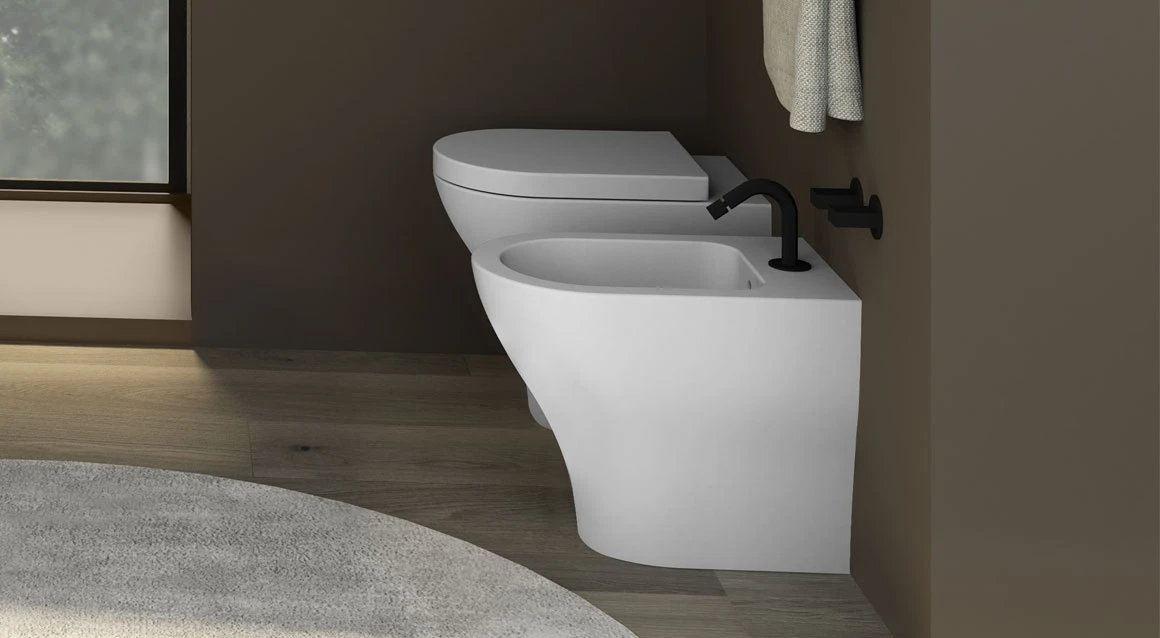 Bidet a filo parete disponibile in diverse finiture ceramiche.