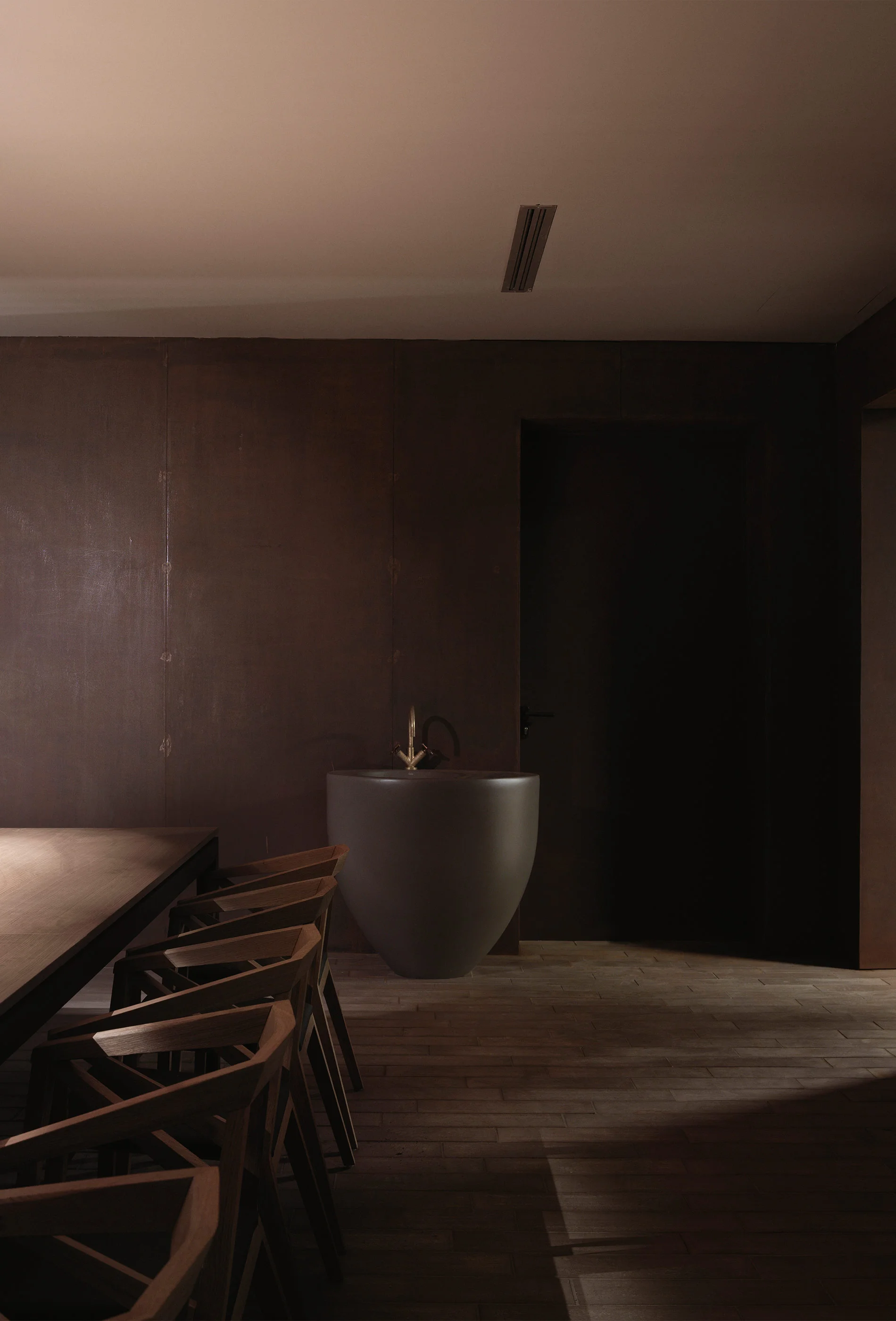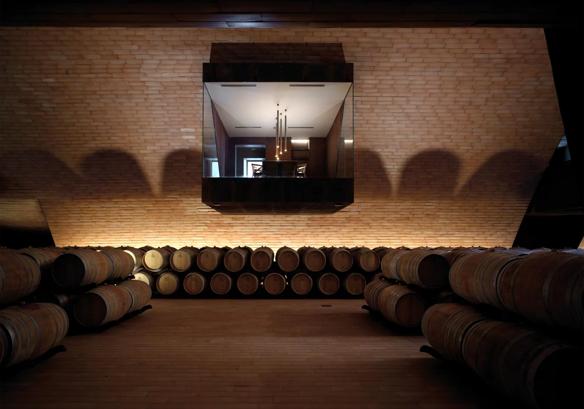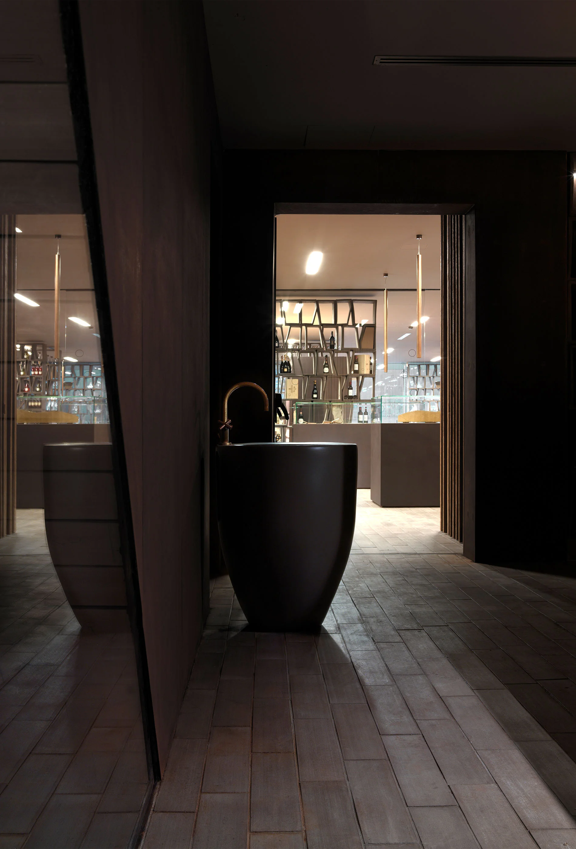 I lavabi freestanding della collezione Le Giare e i modelli della linea Smile diventano elementi scultorei capaci di integrarsi nel design della cantina, in particolare nelle scenografiche sale degustazione sospese sopra la barricaia.