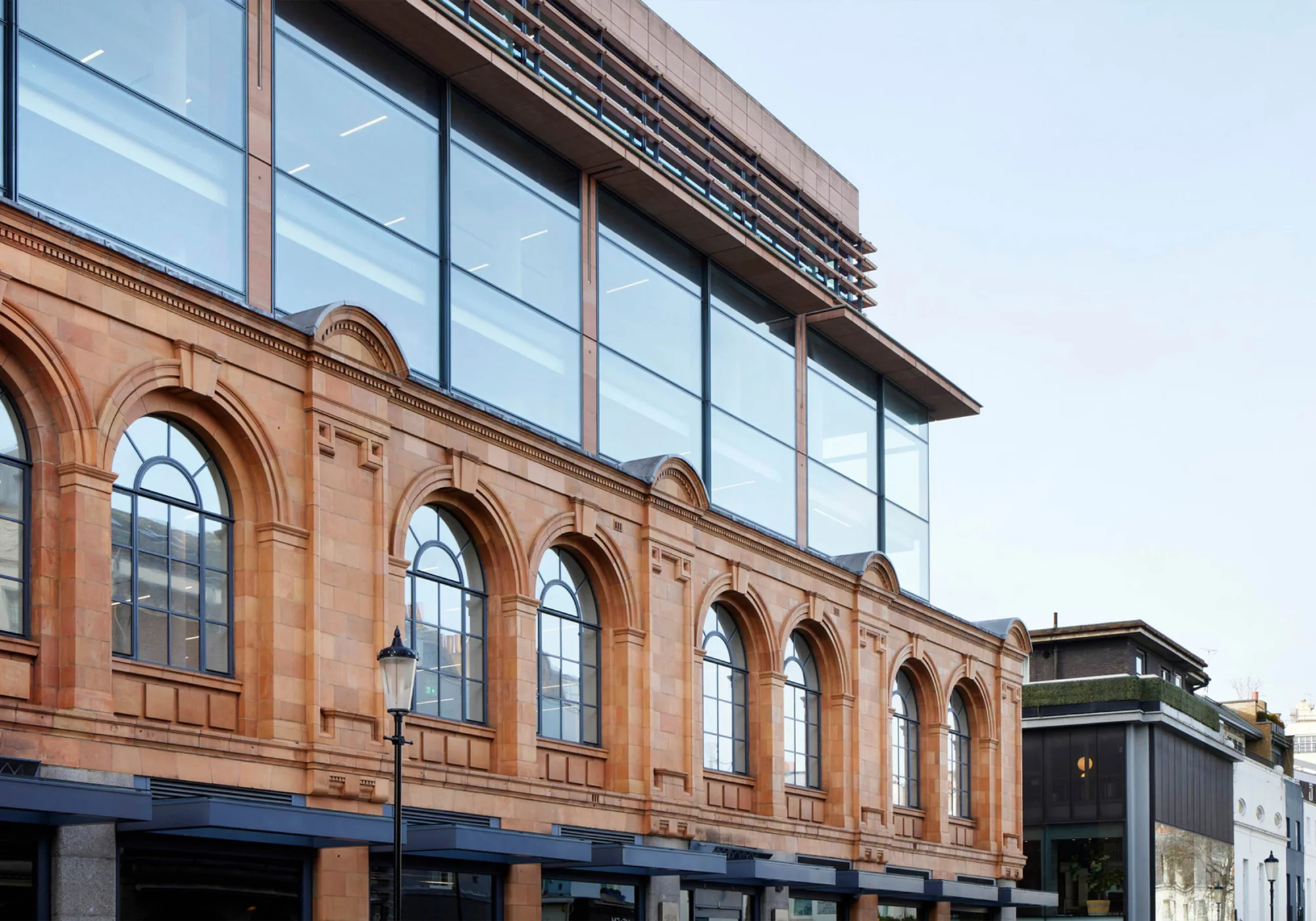 L’intervento ha ridato vita a un ex showroom Harrods nel cuore di Kensington, dove la magnifica facciata in terracotta è stata restaurata meticolosamente per recuperare il suo splendore originale.