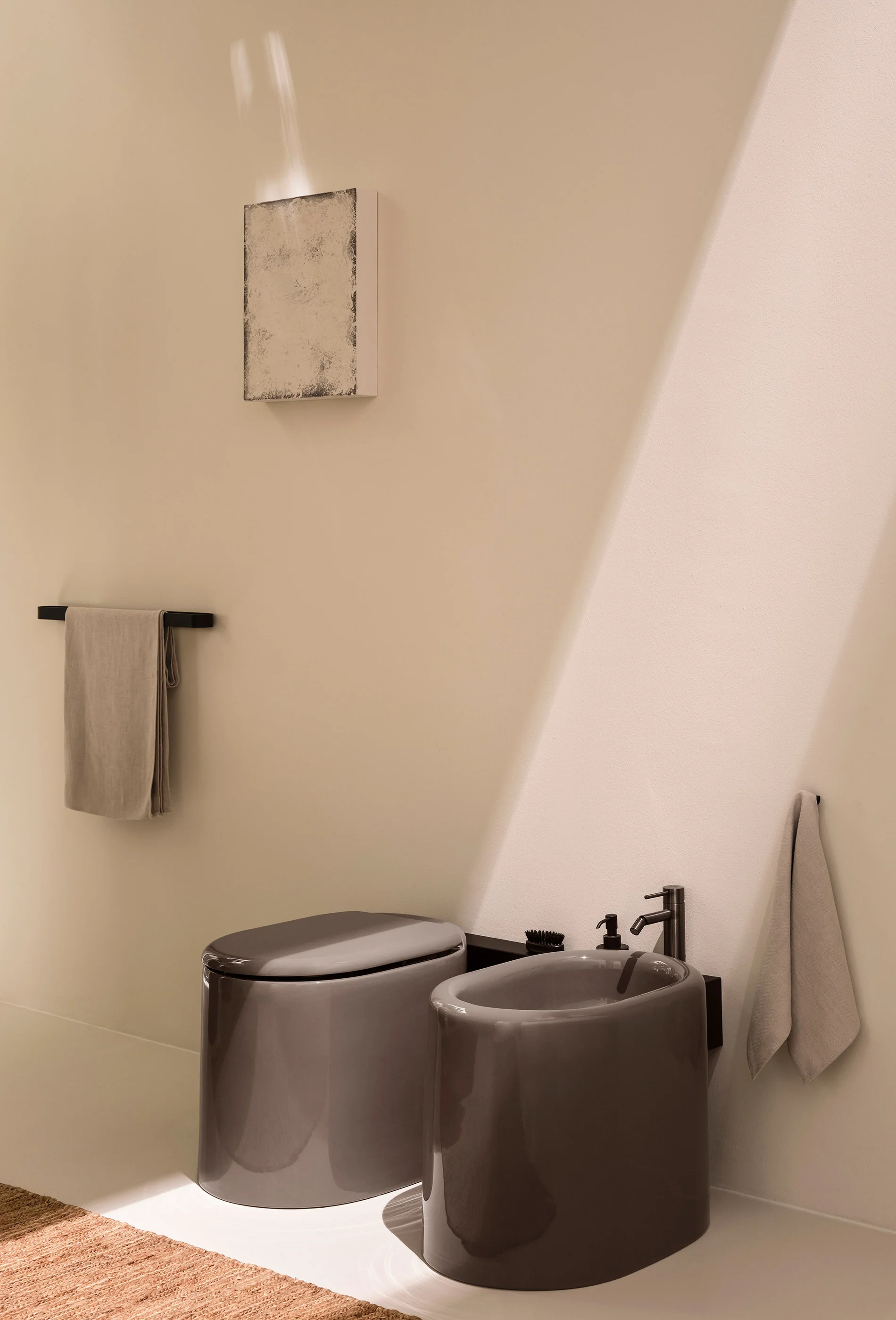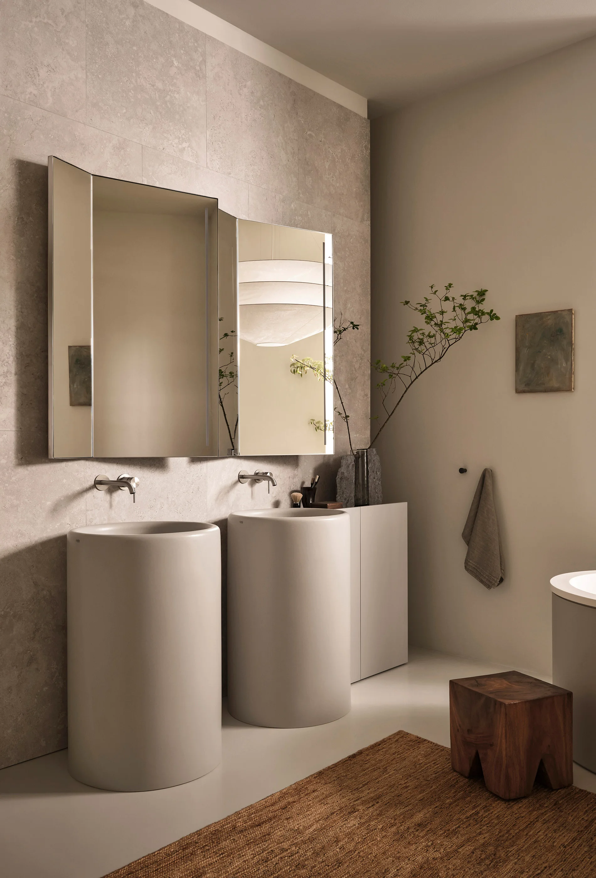 Коллекция дополняется овальной чашей, которую можно использовать как в настольной версии, так и в отдельно стоящем варианте на колонне, а также парой сантехнических изделий, доступных в подвесной и напольной версиях. Последняя недавно получила премию Archiproducts Design Award 2024 в категории «ванная комната», подтверждая выдающийся дизайн и внимание к деталям, характерные для «Itaca». С этой коллекцией Ceramica Cielo вновь демонстрирует своё мастерство в работе с керамикой, создавая элементы с ярко выраженной эстетикой и полностью соответствующие актуальным тенденциям оформления ванных комнат.
