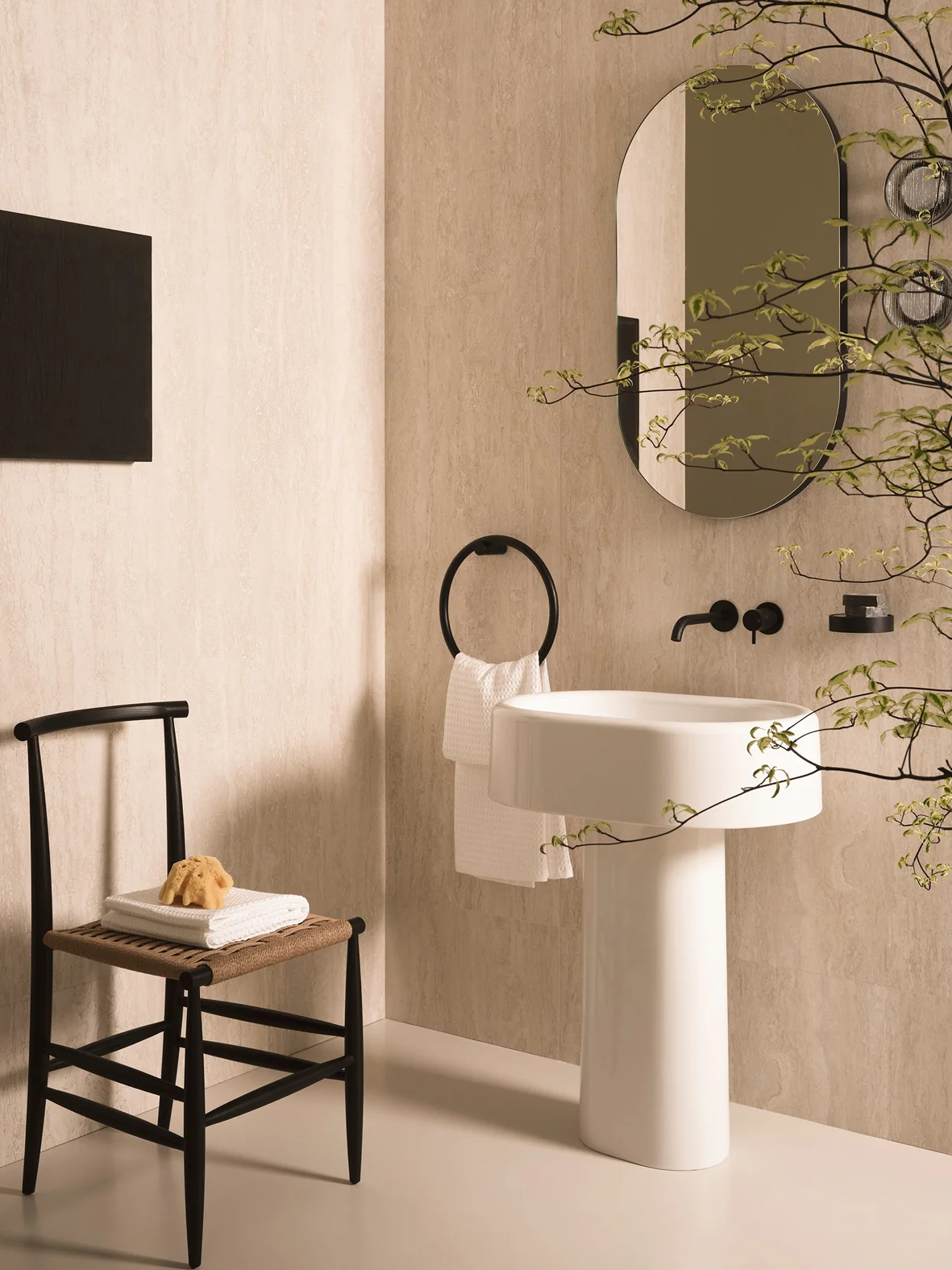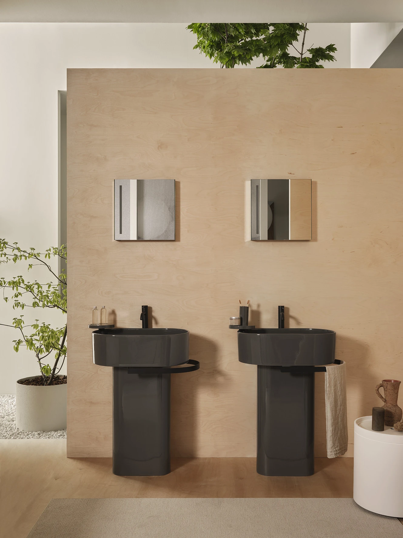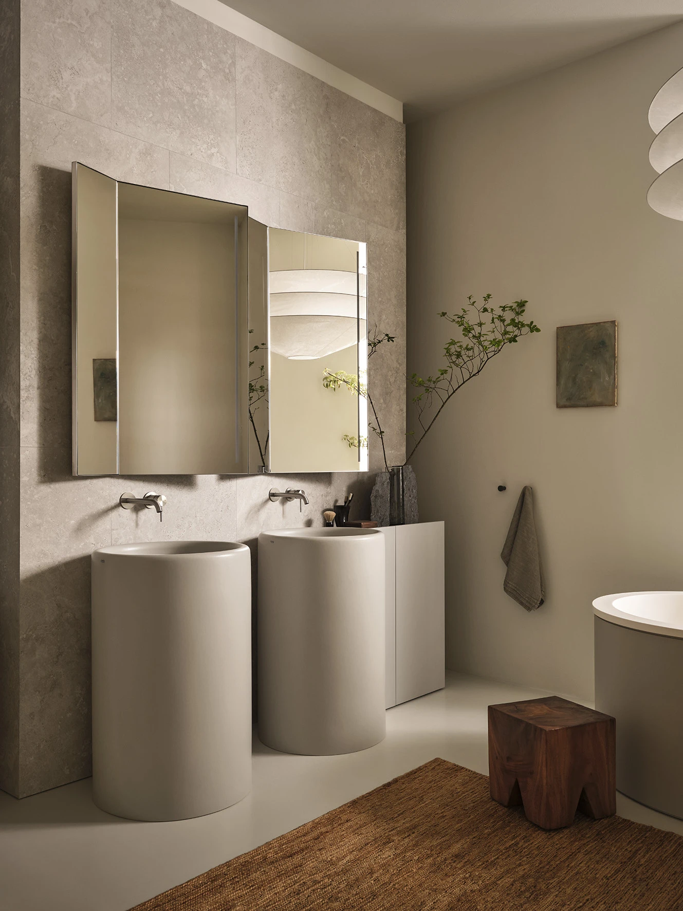 Itaca — это остров, символ возвращения домой, путешествия к истокам керамики. Керамические объекты с сильным эстетическим воздействием — отдельные и одновременно связанные между собой, словно острова архипелага — отличаются простыми, мягкими и первозданными формами, создающими всё более интимный домашний ритуал. Разработанная дизайнером Лукой Цимарра, коллекция расширяет творческую вселенную CIELO и подтверждает мастерство бренда в работе с керамическим материалом, формируя элементы с ярко выраженной эстетикой и в полной гармонии с современными тенденциями оформления ванных комнат.