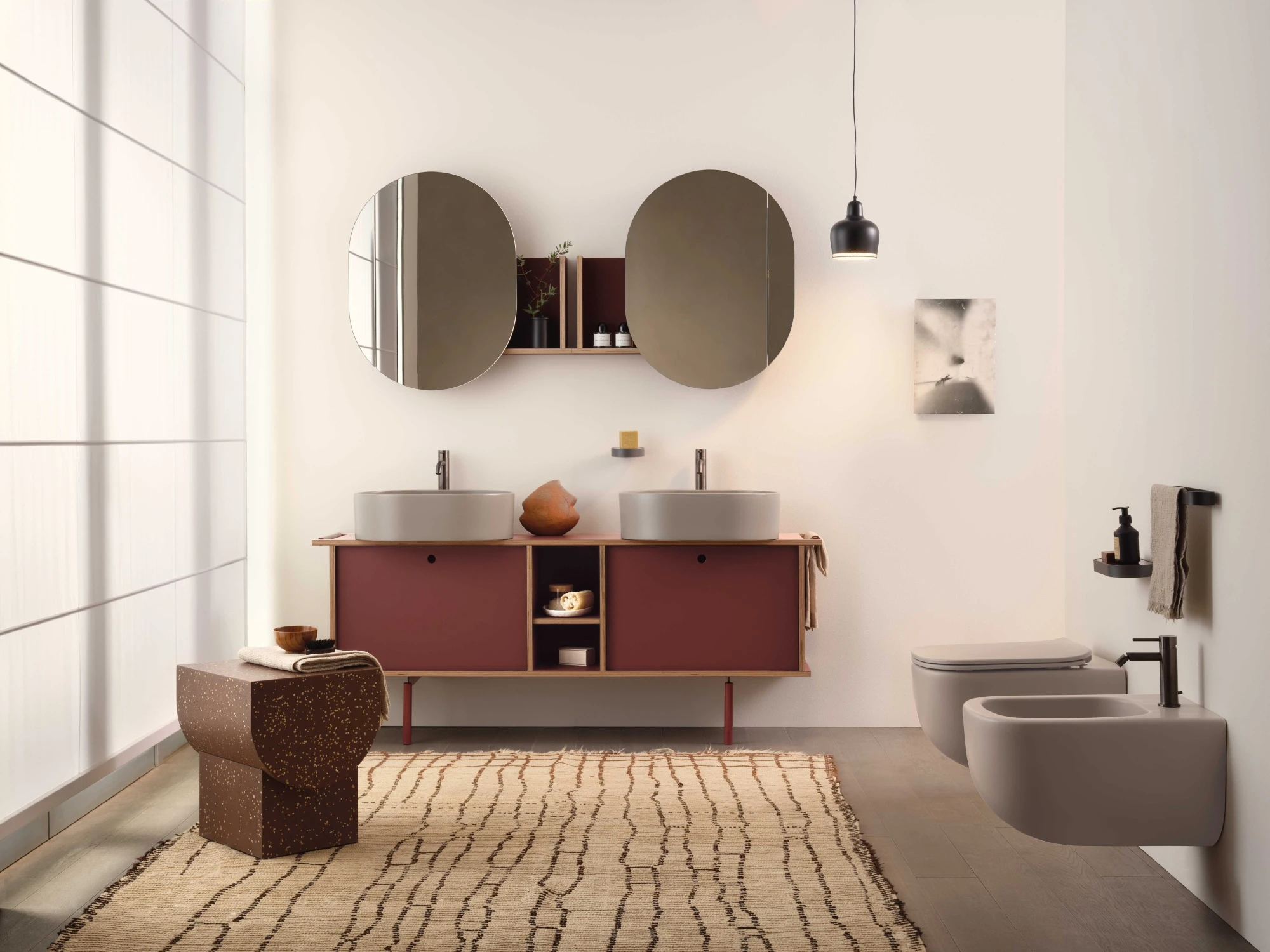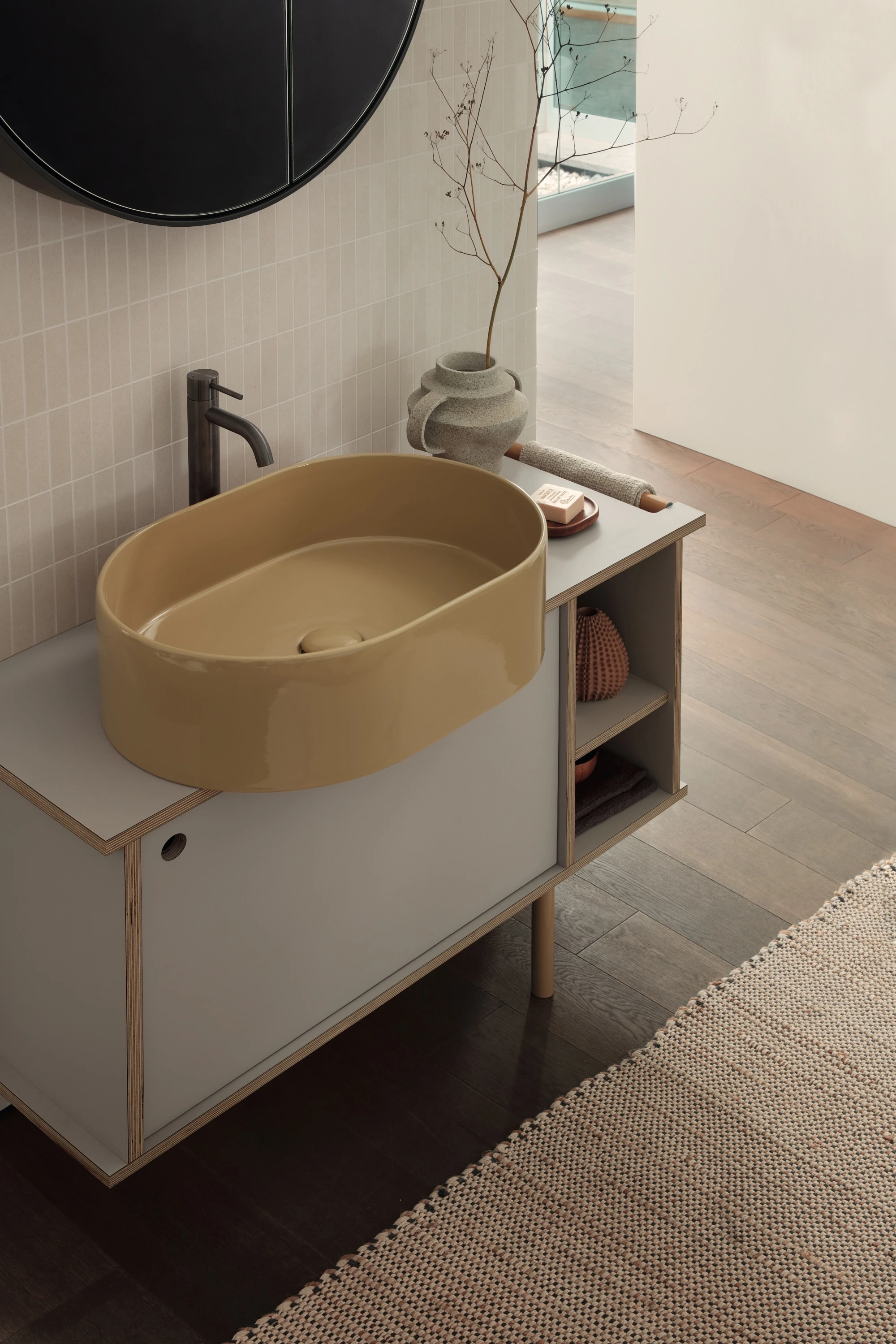 Ceramica Cielo представляет Theo — тумбу с раковиной, созданную Андреа Паризио и Джузеппе Пеццано. Модель основана на тщательно выверенном балансе плоскостей, линий и цветовых акцентов. Цвет и дизайн становятся структурными элементами, подчеркивая выразительность керамики через лаконичные формы и точные пропорции, в сочетании с современными материалами, такими как Fenix-NTM® и многослойная древесина.