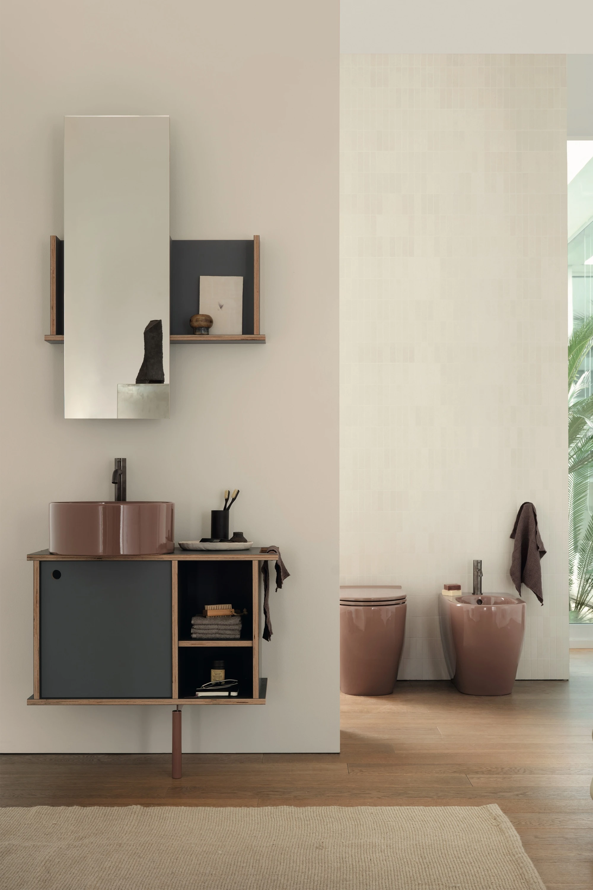 Вдохновлённая движением De Stijl, одним из самых влиятельных в истории современного искусства, коллекция Theo переосмысливает принципы абстракции и простоты в современном ключе. Строгая геометрия сочетается с тактильными поверхностями и широкой цветовой палитрой, включая эксклюзивные покрытия «Terre di Cielo», созданные для подчёркивания глубины керамики. Так формируется визуальный язык, объединяющий лёгкость, модульность и ярко выраженную графичность.