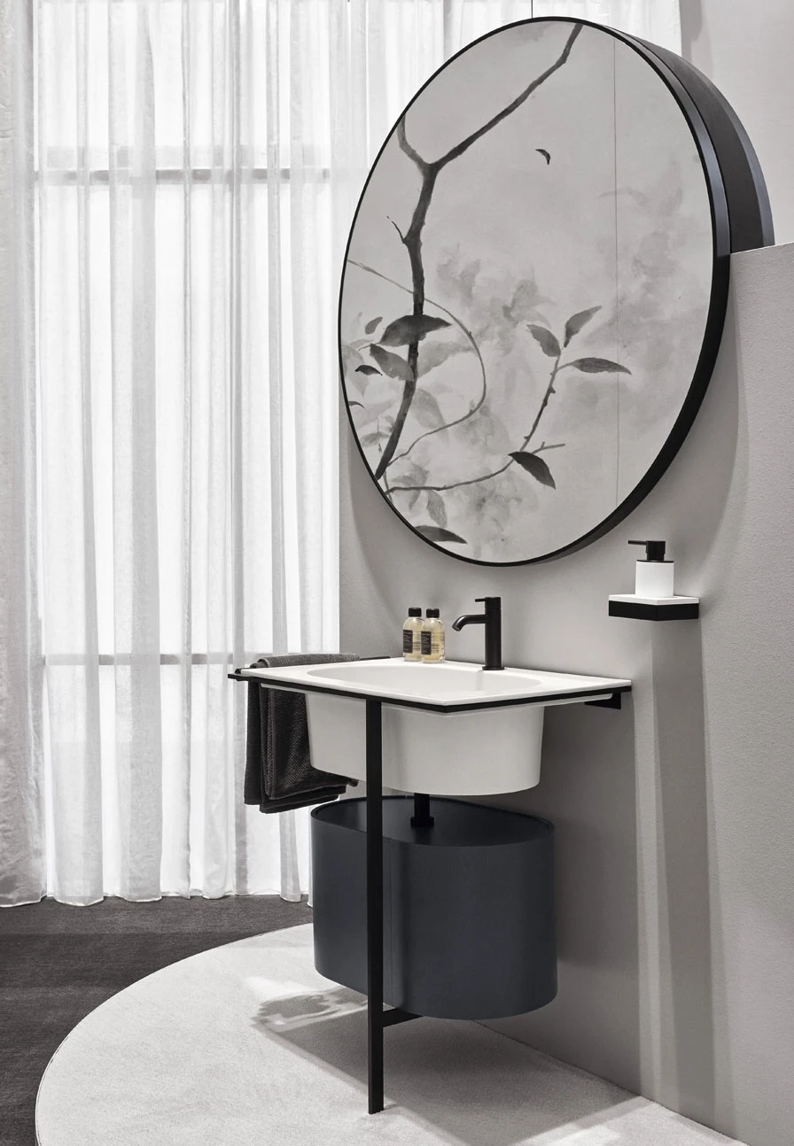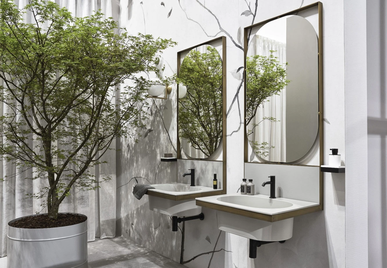 Концепция стенда вдохновлена типичной итальянской архитектурой: просторным и уютным центральным двориком, на который, как в старинном особняке, выходят различные «ванные комнаты». Эта игра перспектив и проемов создает непрерывный диалог между интерьером и экстерьером, подчеркивая текучесть керамических форм.