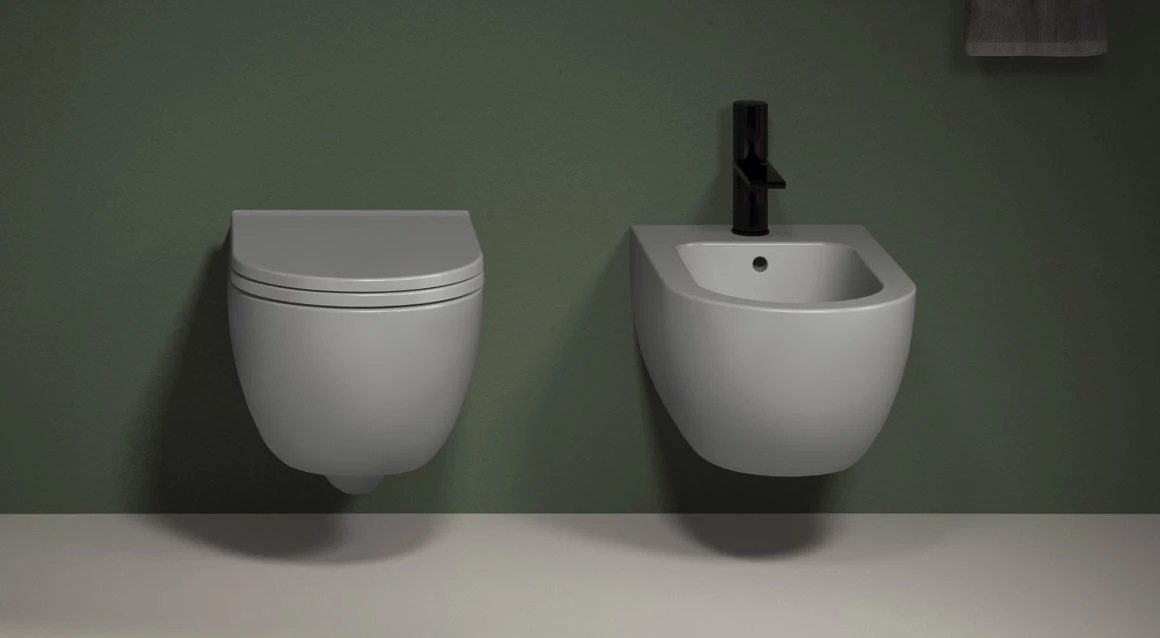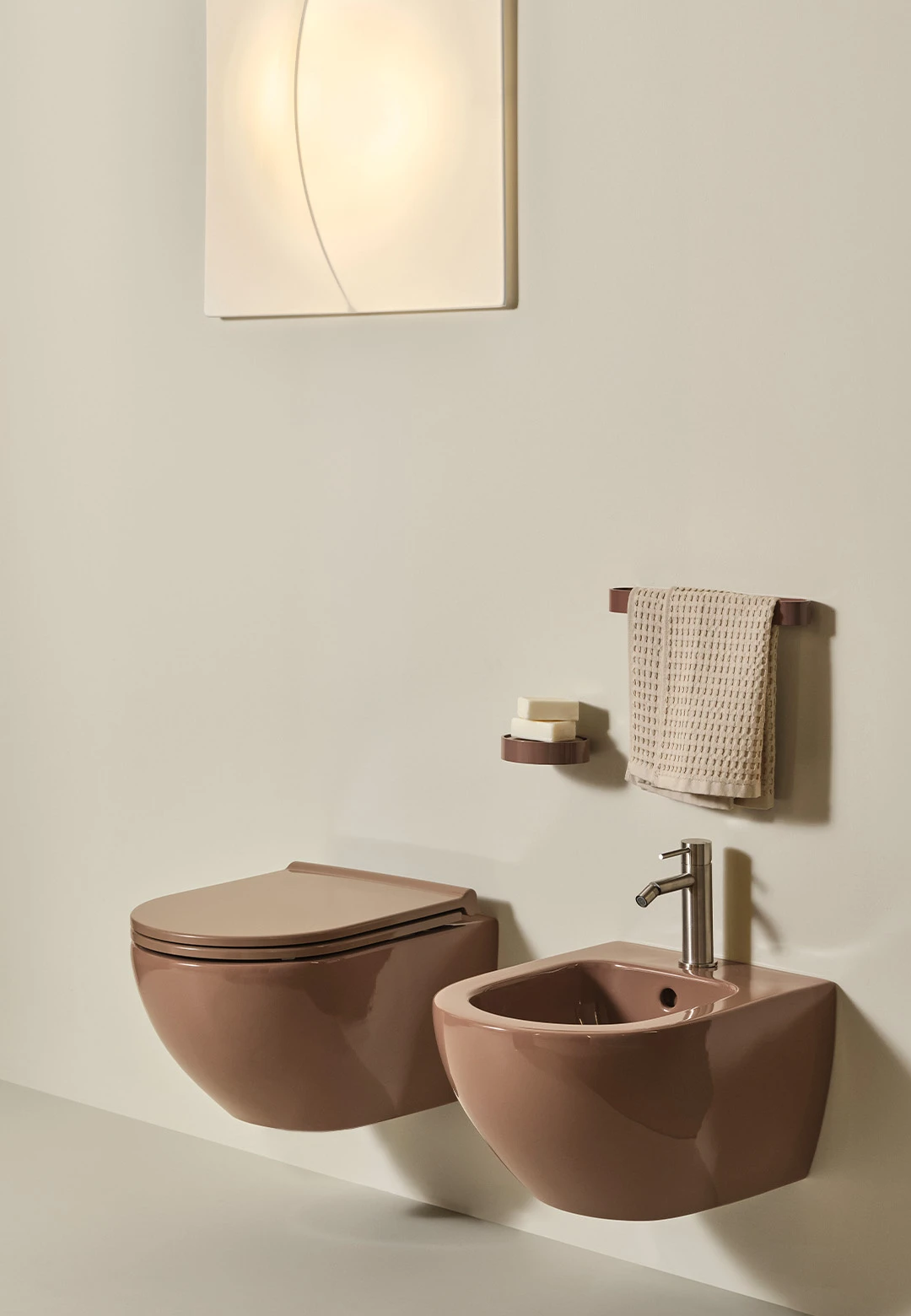 Унитаз подвесной БЕЗОБОДКОВЫЙ, доступен в различных отделках.
