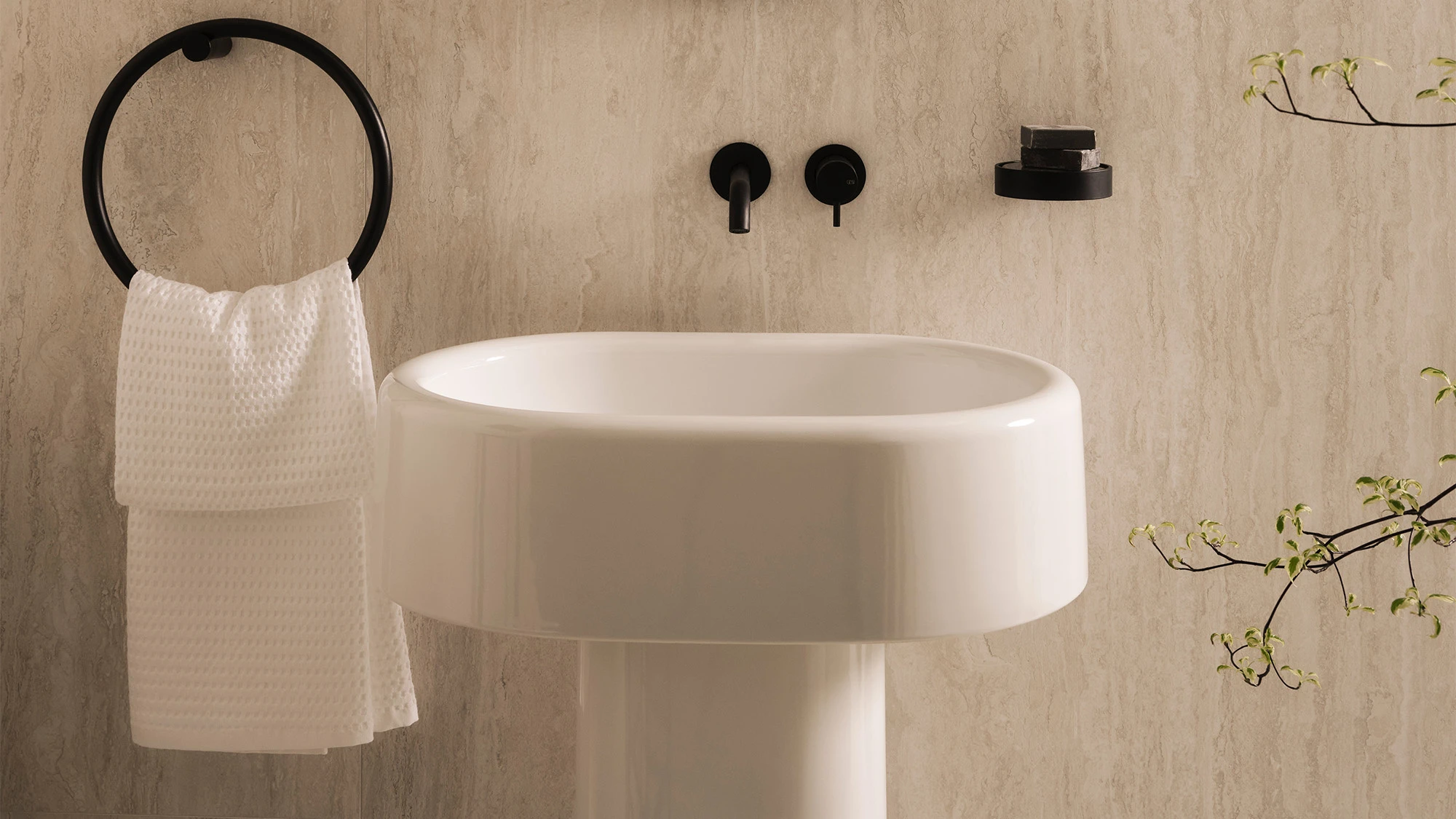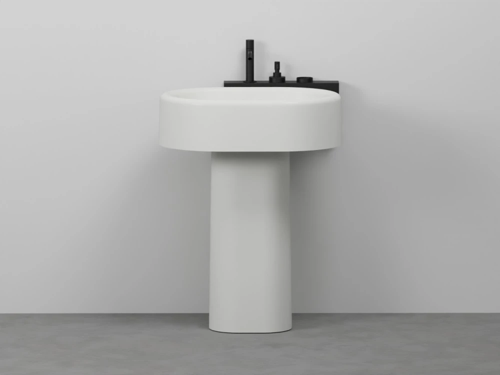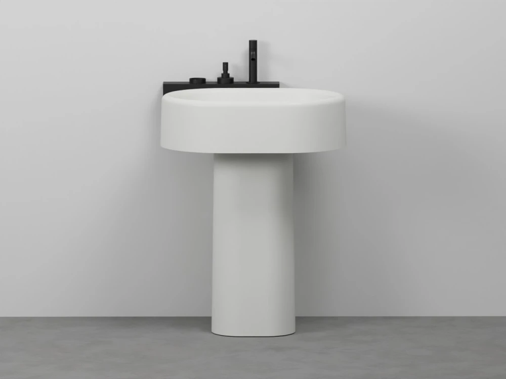 Аксессуар для овальной раковины Itaca, с отверстием под смеситель, подставка под диспенсер и стаканчик, слева - справа
