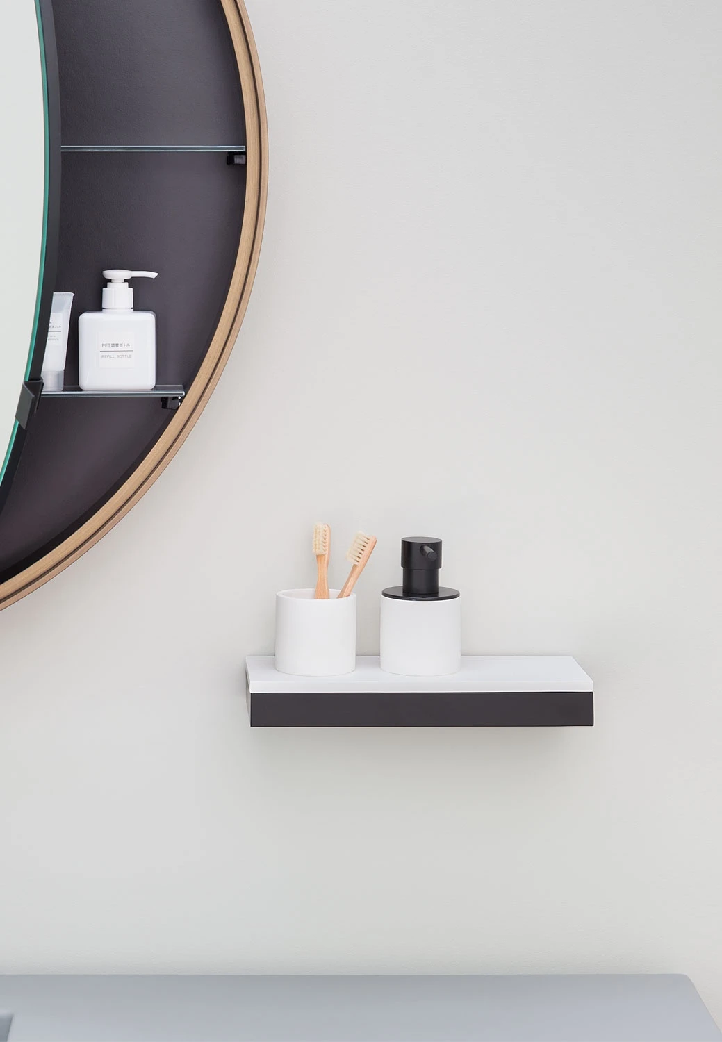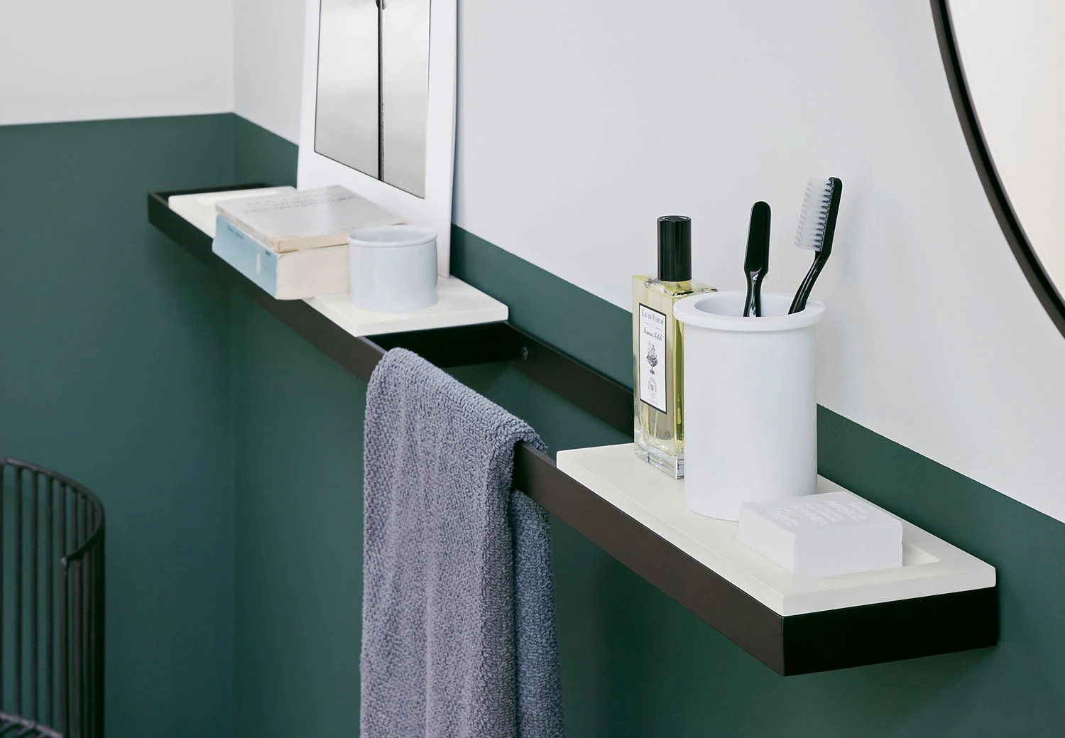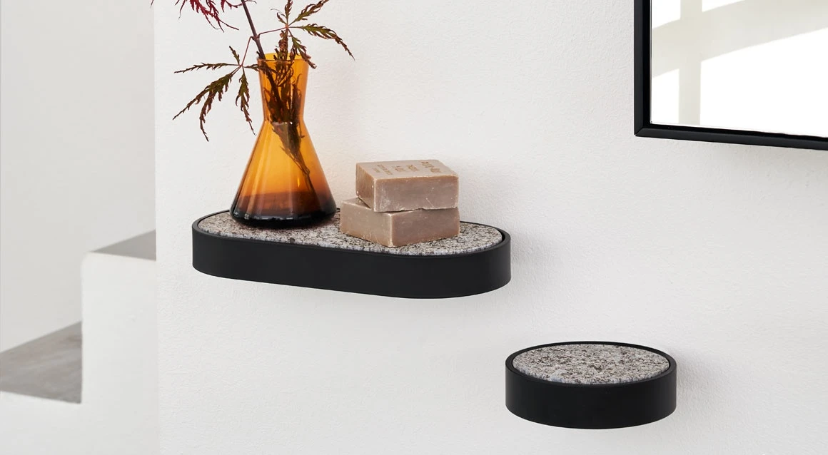 Полочка-держатель для аксессуаров из металла с полочкой из материала Solid Surface